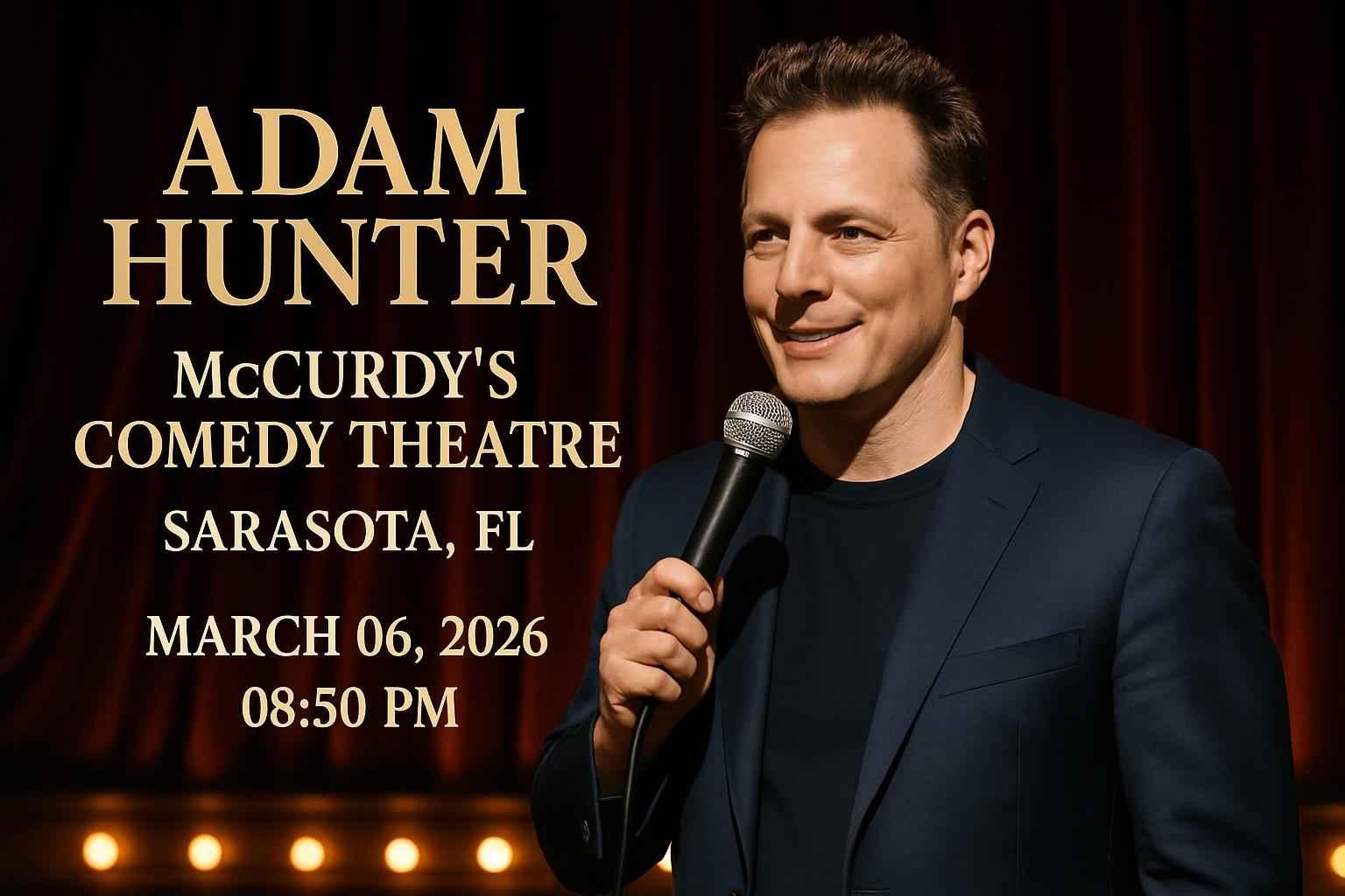 Adam Hunter performs live at McCurdy’s Comedy Theatre Sarasota on March 06 2026 starting at 0850 PM.