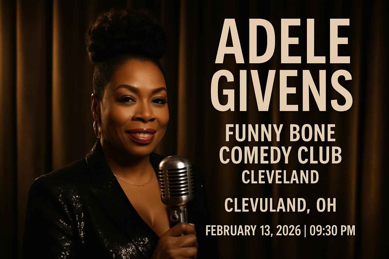 Funny Bone Comedy Club in Cleveland is known for its comfortable seating excellent acoustics and top-tier comedy acts. The venue is located in a popular Cleveland entertainment district close to local restaurants and nightlife making it easy to plan a full evening around the Adele Givens show. Early arrival is recommended for the best seat selection.