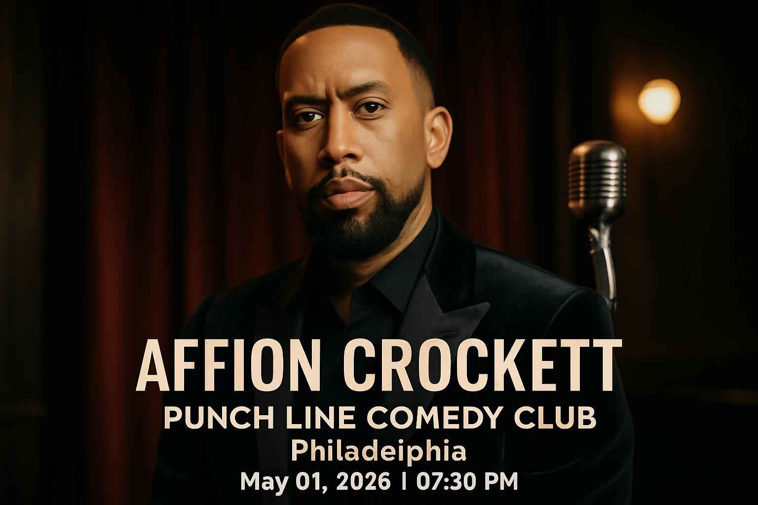 Experience top-tier stand-up as Affion Crockett brings his unique comedy to Punch Line Comedy Club in Philadelphia, PA on May 01, 2026 at 7:30 PM. Secure your spot at one of the most anticipated live comedy events in Philadelphia. RSVP Event Agency offers verified promo codes and exclusive discount tickets, making it easy to save on your next laughter-filled night out.