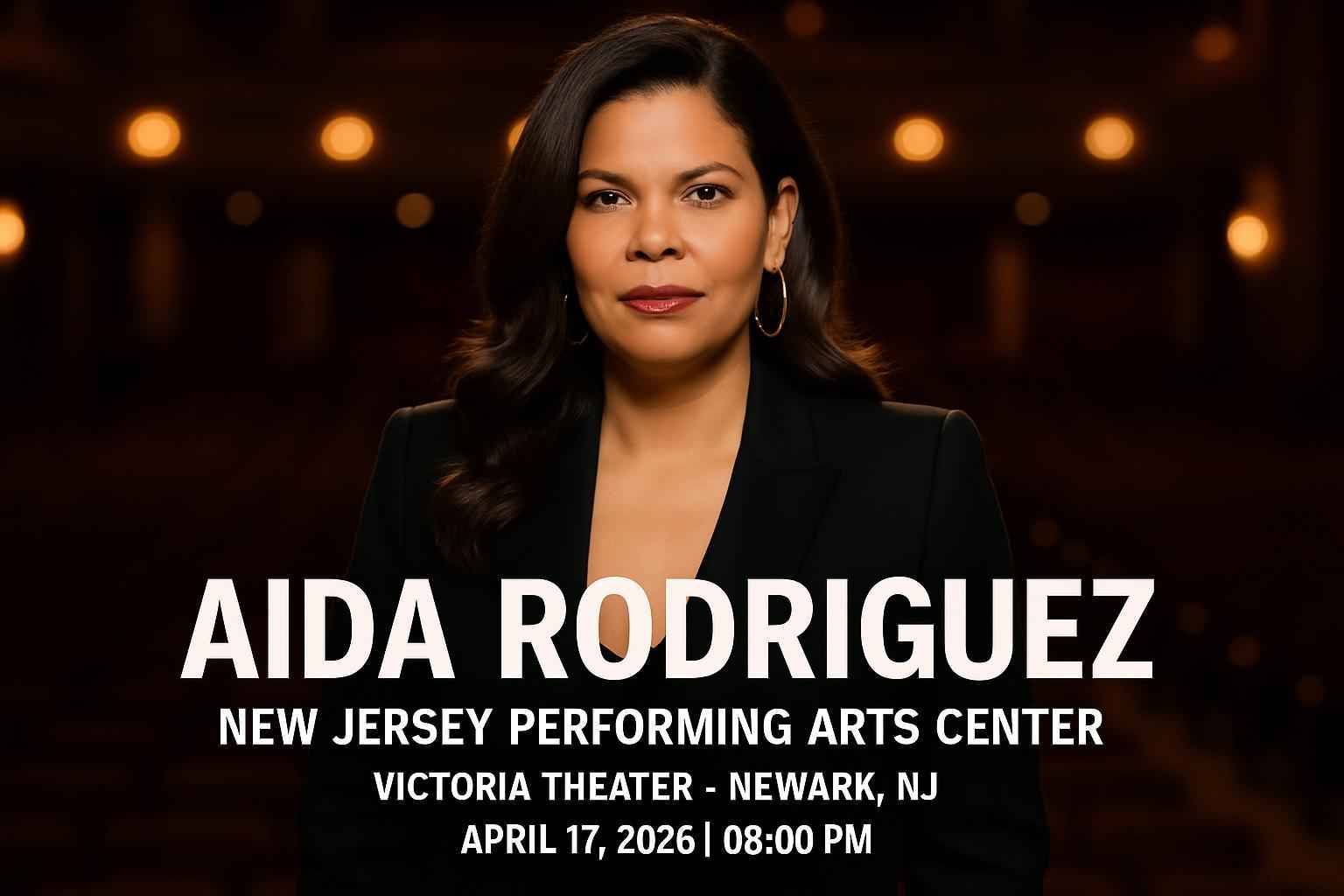 Aida Rodriguez performs at the New Jersey Performing Arts Center Victoria Theater in Newark NJ on April 17 2026 at 8 PM.