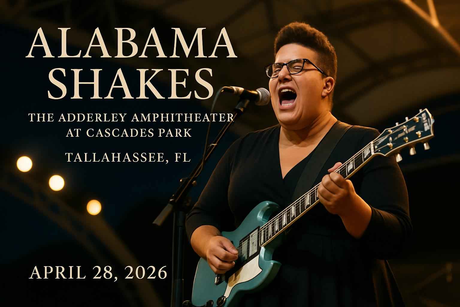 The Alabama Shakes concert begins at 0730 PM at The Adderley Amphitheater located in Cascades Park Tallahassee FL. Expect powerful live performances and a vibrant atmosphere as Alabama Shakes brings their signature sound to one of North Florida’s premier outdoor venues. Plan your visit with local parking tips and Tallahassee area directions for a smooth concert experience.