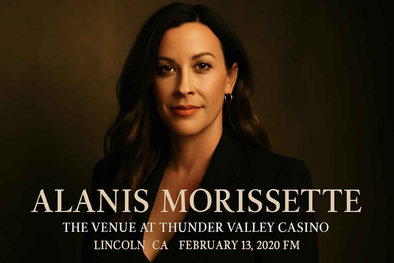 Alanis Morissette performs live at The Venue At Thunder Valley Casino in Lincoln, CA on February 13, 2026, at 8 PM. RSVP Event Agency offers exclusive promo codes and discounts on tickets, including VIP packages and premium seating. Secure your spot early, enjoy accessible parking, and explore local dining. Official merchandise will be available at the event.