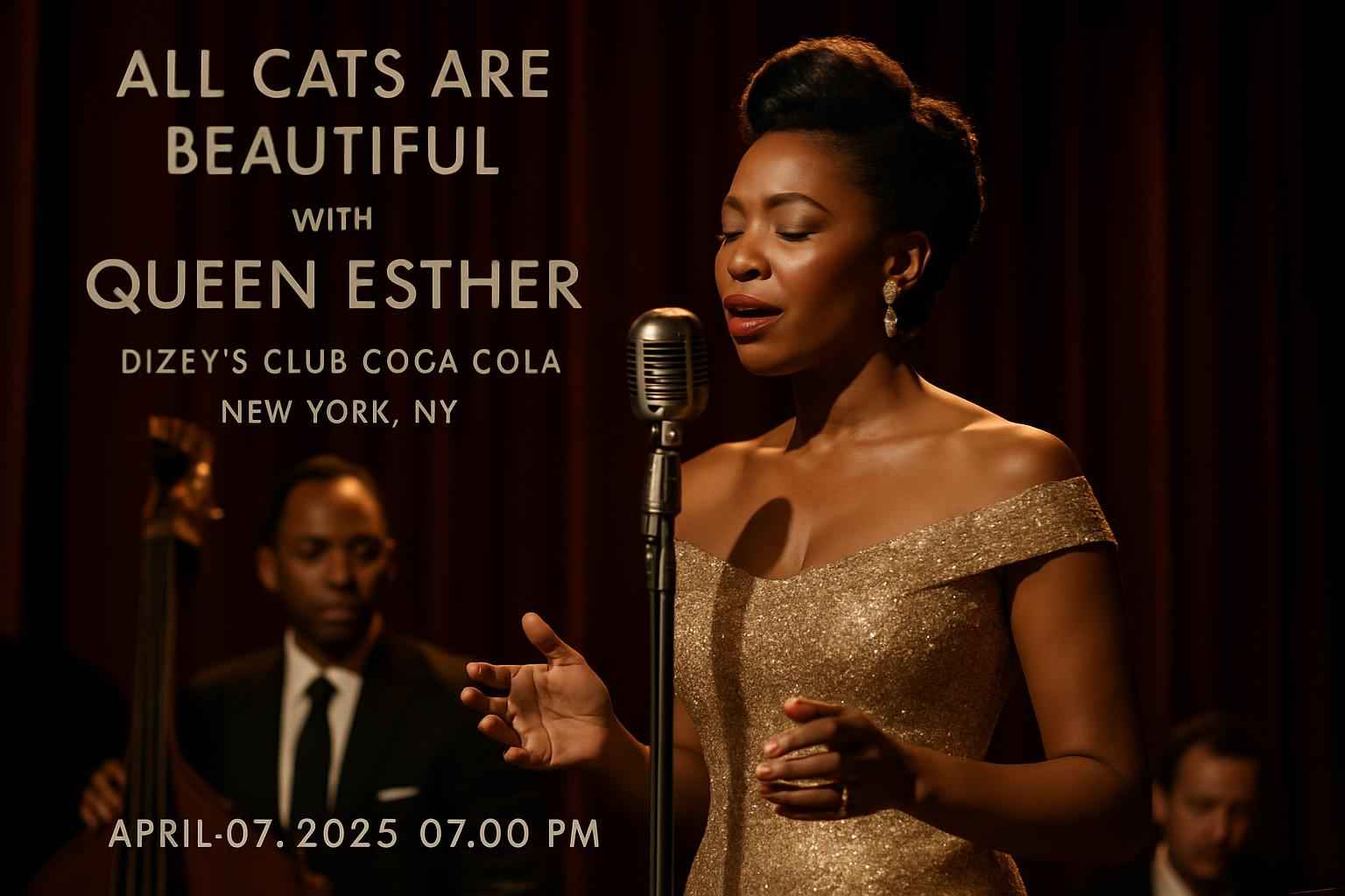 Join acclaimed vocalist Queen Esther at Dizzys Club Coca-Cola for a special performance of All Cats Are Beautiful. This New York jazz event brings together music lovers and fans of live entertainment for a night of soulful melodies and captivating artistry. Doors open at 07:00 PM on April 07 2026. Dizzys Club Coca-Cola offers stunning skyline views and world-class acoustics for an immersive concert experience.