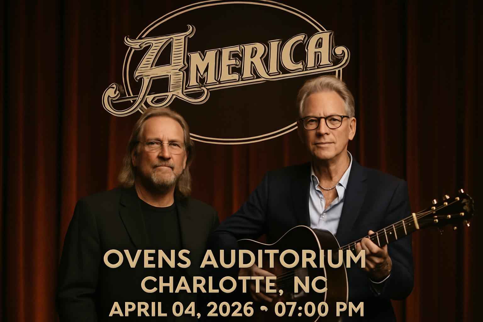 America – The Band brings their legendary soft rock sound to Ovens Auditorium Charlotte NC on April 04 2026. The show starts at 7 PM and features iconic hits and a welcoming atmosphere for fans of all ages. Ovens Auditorium is centrally located with convenient parking and accessibility features making it a favorite for Charlotte live music events.