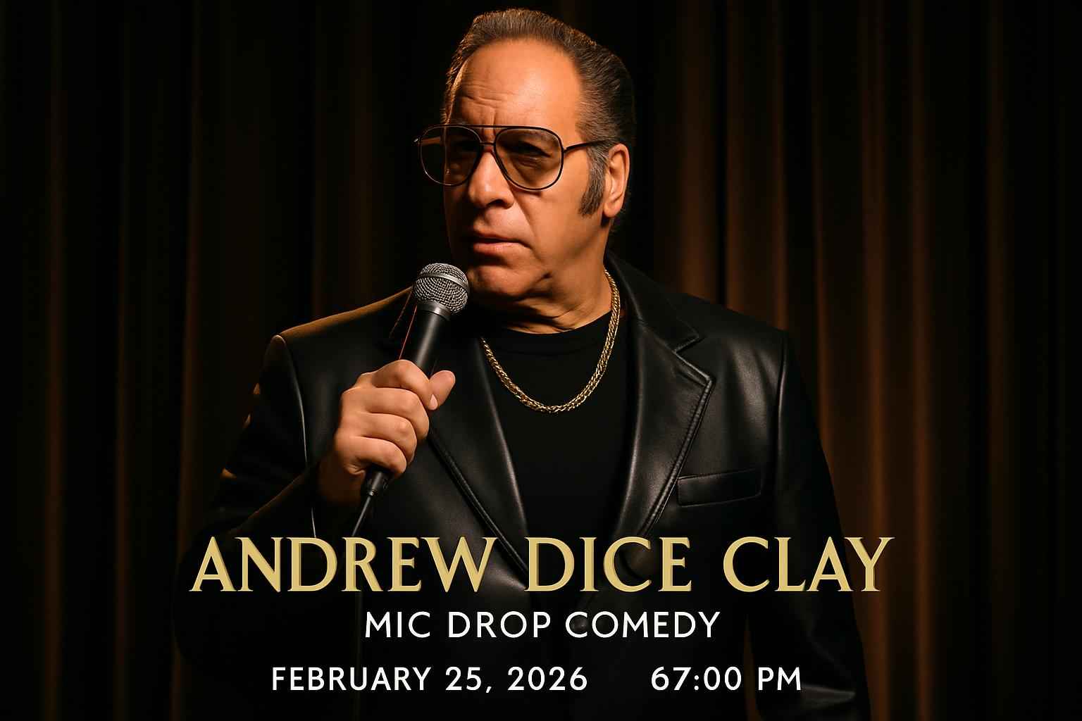 Andrew Dice Clay brings raw energy and classic stand-up to Mic Drop Comedy Plano for one night only. The show takes place at one of Plano TXs top comedy venues known for its intimate atmosphere and outstanding sound. The February 25 2026 event starts at 7 PM with doors opening early for VIP ticket holders. Enjoy food and drinks while experiencing the iconic humor of Andrew Dice Clay.