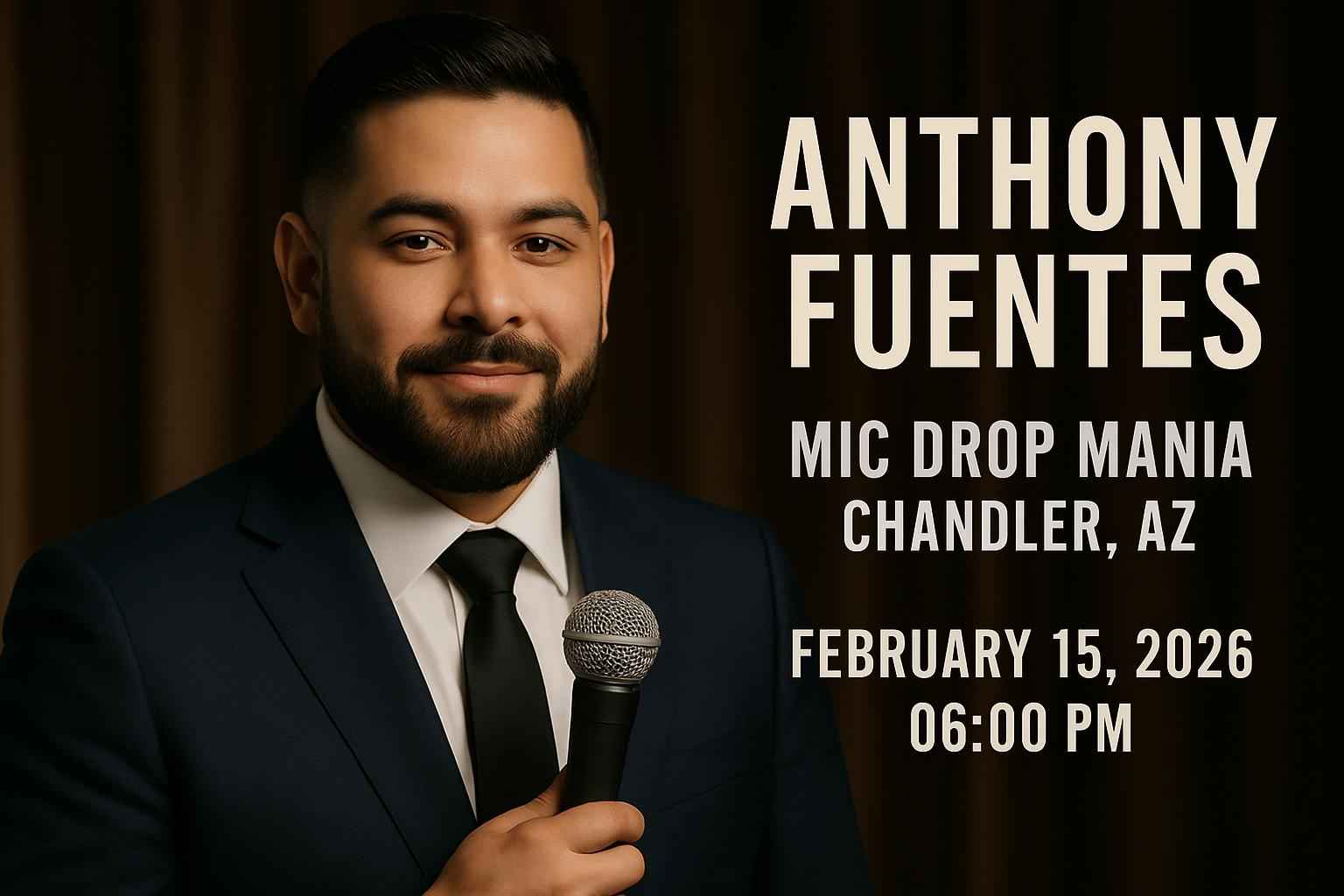 Anthony Fuentes brings Mic Drop Mania to Chandler AZ for one night only Experience stand-up comedy in a vibrant local atmosphere with limited seating and premium sound Doors open at 5:00 PM and the show starts promptly at 6:00 PM Located at a central Chandler venue this event draws fans from across Maricopa County seeking memorable entertainment and top-tier laughs