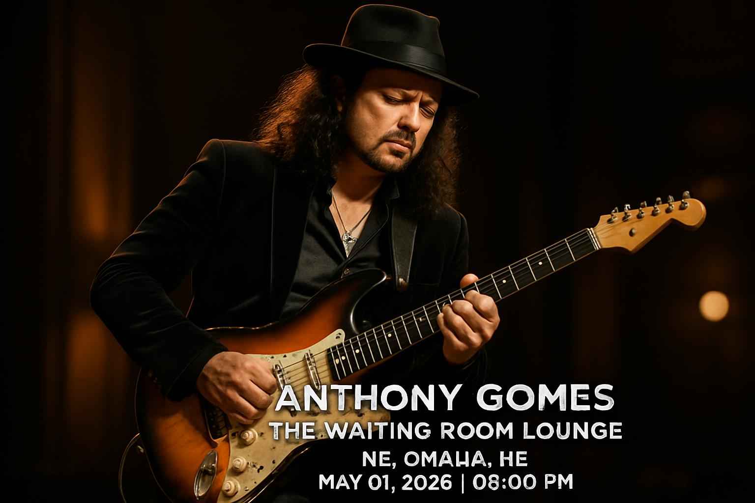 Anthony Gomes brings high-energy blues guitar and soulful vocals to The Waiting Room Lounge NE in Omaha NE. This anticipated event on May 01 2026 at 8:00 PM attracts music fans from across Nebraska. Find parking information venue policies and premium ticket options while planning your night out in Omaha.