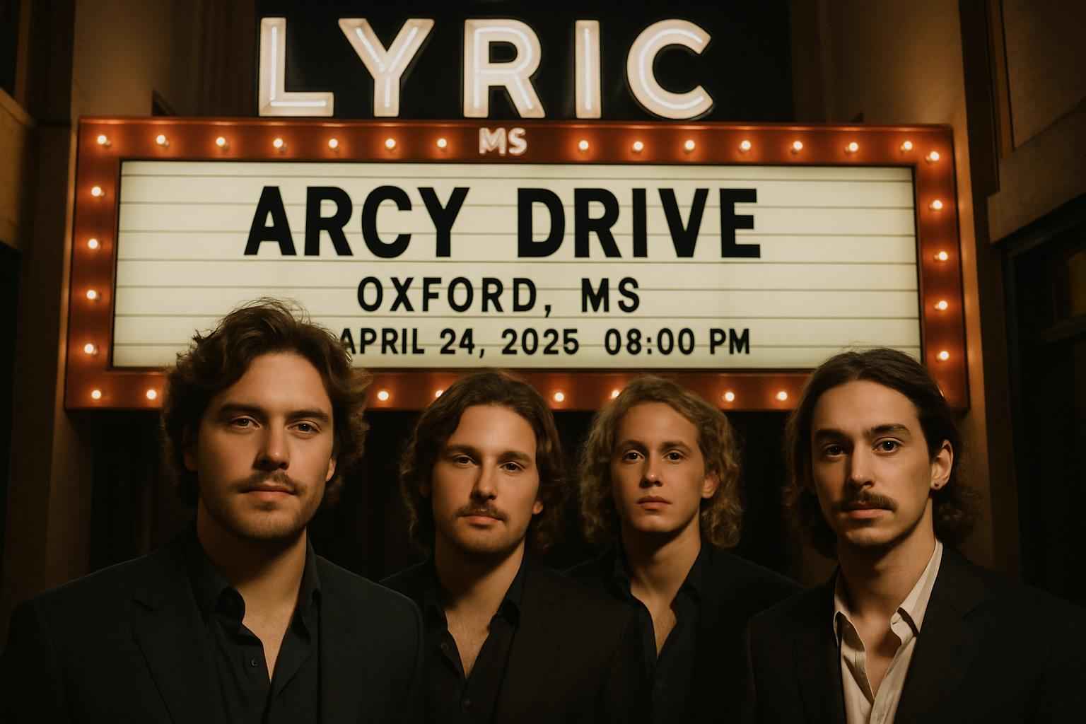 Arcy Drive performs at The Lyric in Oxford MS on April 24 2026 starting at 9 PM.