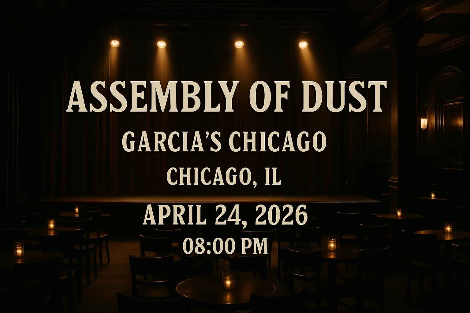 Experience Assembly of Dust live at Garcias Chicago on April 24 2026 at 8:00 PM. This Chicago concert brings together passionate fans for an unforgettable night in one of Illinois most beloved music venues. Enjoy top-tier sound and venue amenities in the heart of Chicago. Secure your spot and maximize savings with exclusive Assembly of Dust Garcias Chicago coupon codes only from RSVP Event Agency.
