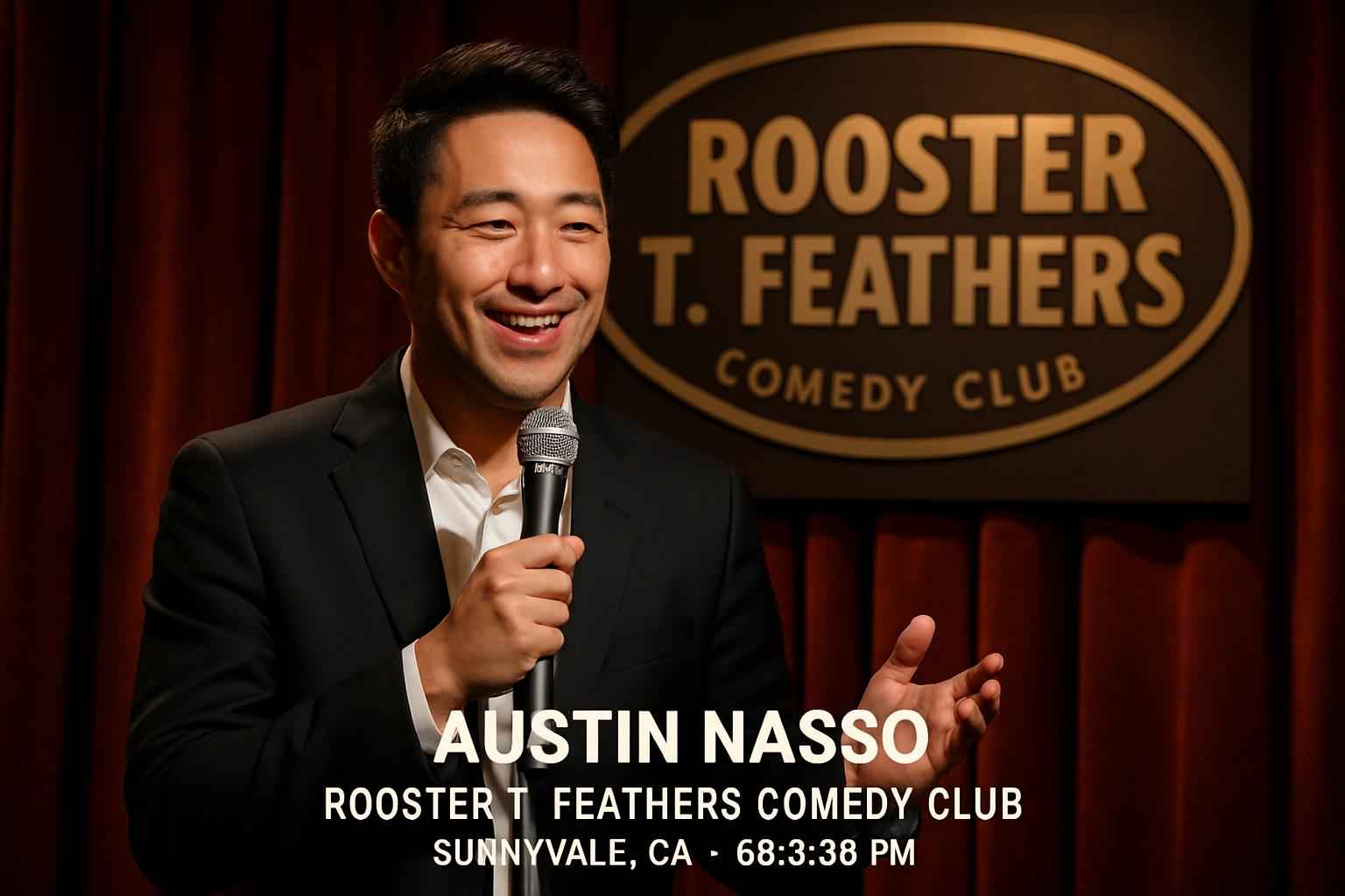 Experience a night of laughter with Austin Nasso at Rooster T Feathers Comedy Club in Sunnyvale CA on April 17 2026 at 0930 PM Discover exclusive promo codes and event details through RSVP Event Agency maximizing your local savings and access to verified discount offers Enjoy the best ticket deals for Austin Nasso while exploring everything you want to know about this popular Bay Area comedy event