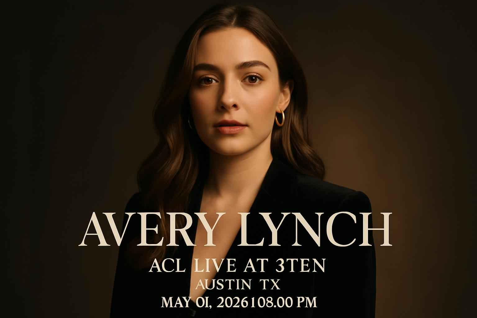 Avery Lynch brings her acclaimed live performance to ACL Live At 3TEN located at 310 Willie Nelson Blvd Austin TX 78701. Doors open at 7 PM with the show starting promptly at 8 PM on Friday May 1 2026. Expect a setlist featuring fan favorites and new music in an intimate setting known for excellent sound and a vibrant Austin atmosphere.