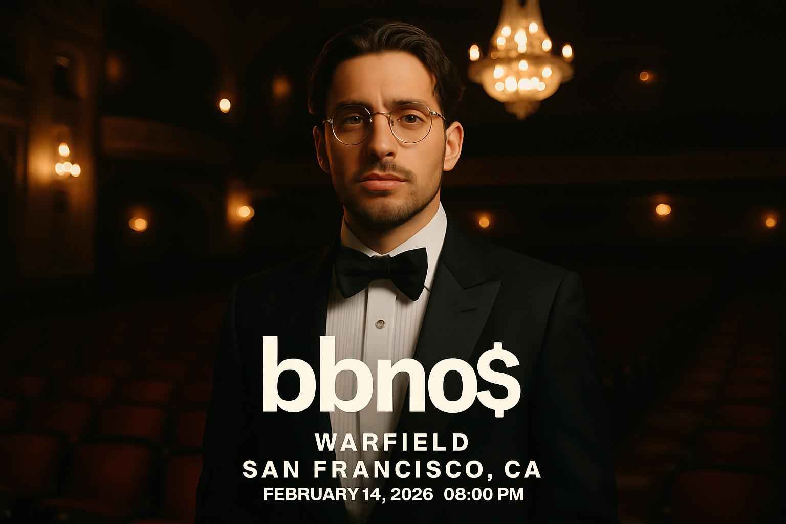 bbno$ takes the stage at Warfield San Francisco at 8:00 PM on February 14 2026. Arrive early for the best experience.