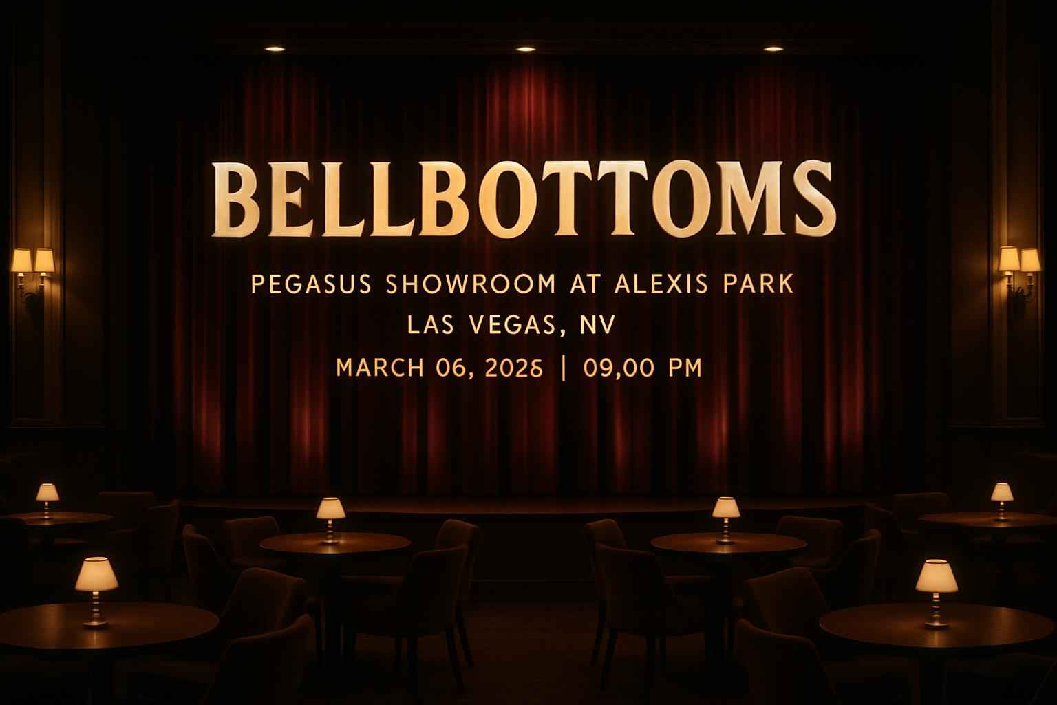 Bellbottoms begins at 0900 PM on March 06 2026 at Pegasus Showroom Alexis Park. Doors open at 0830 PM for early seating and check-in.