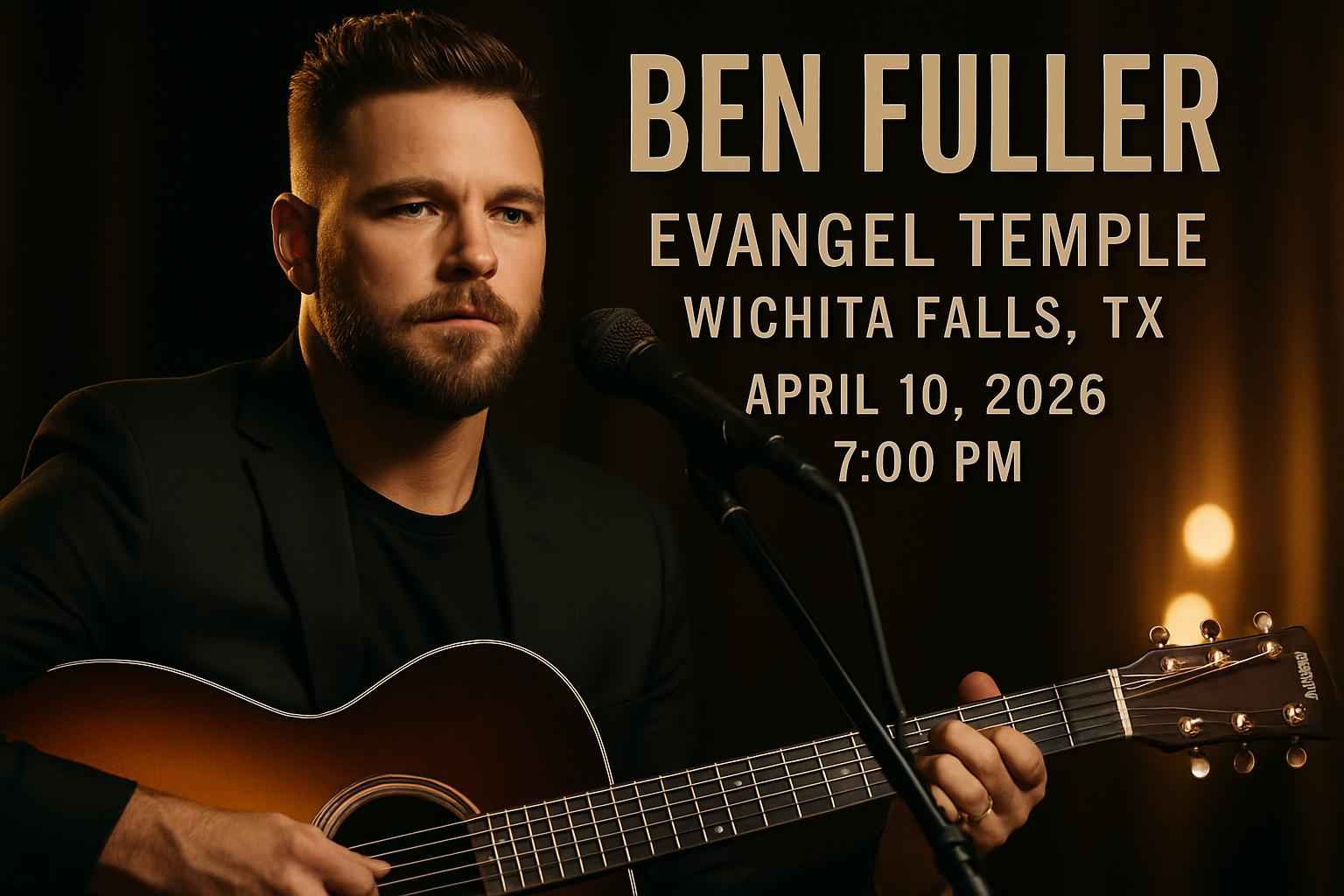 Ben Fuller takes the stage at 700 PM on April 10 2026 at Evangel Temple Wichita Falls. Doors open at 600 PM for early arrivals.