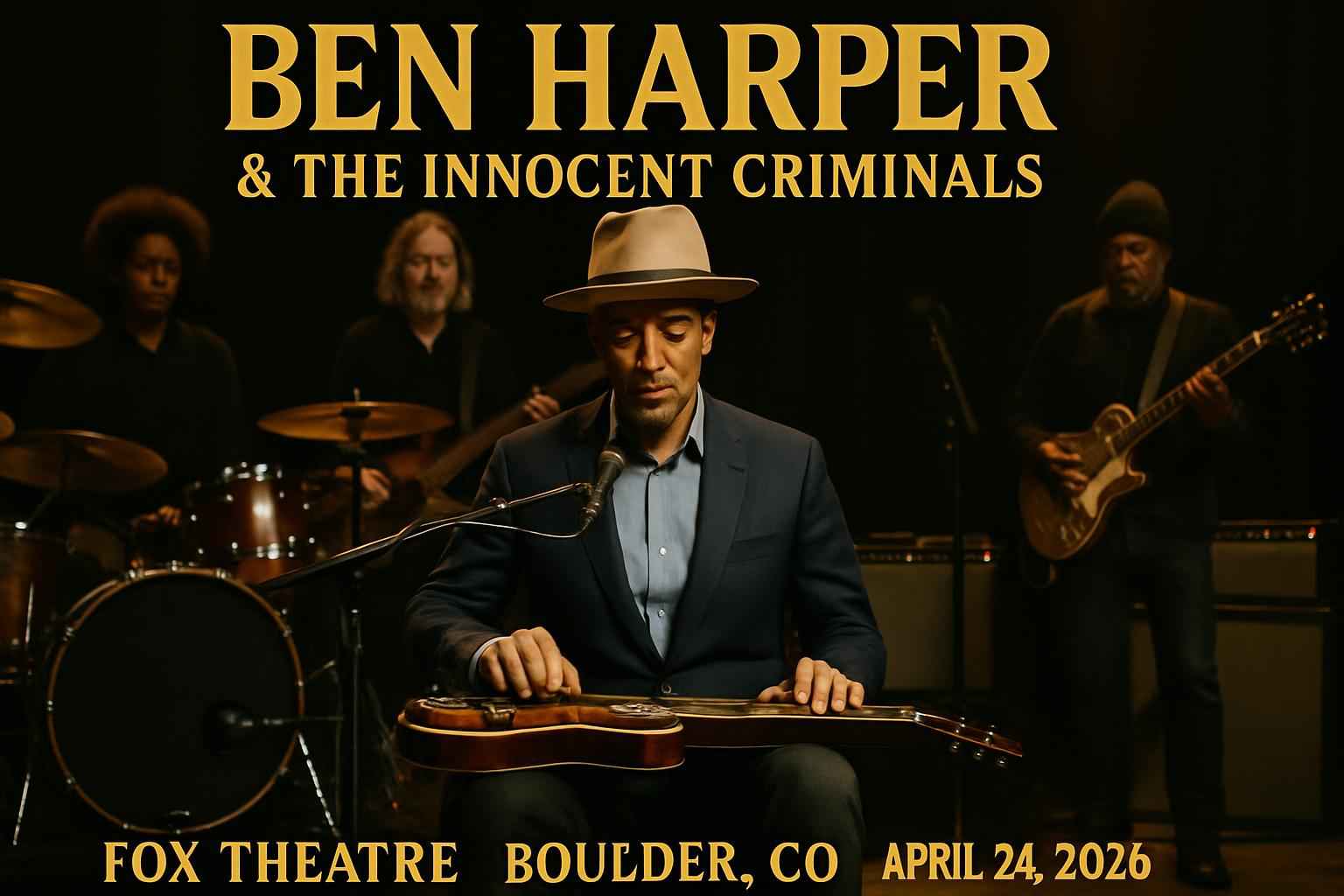 Experience Ben Harper & The Innocent Criminals live at Fox Theatre in Boulder CO on April 24 2026 at 8:00 PM. This highly anticipated concert brings soulful rock and blues to one of Colorado’s most iconic music venues. Secure your spot for an unforgettable night with exclusive promo codes and the best ticket deals from RSVP Event Agency.