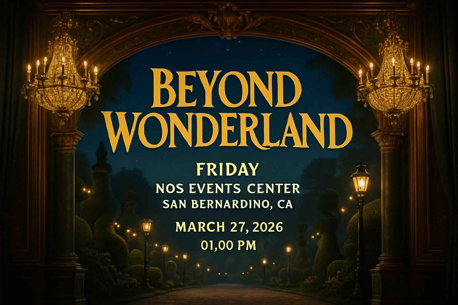 Experience the ultimate electronic dance festival at Beyond Wonderland – Friday at Nos Events Center in San Bernardino CA on March 27 2026 at 1:00 PM. Unlock exclusive access and top savings with verified Beyond Wonderland promo codes from RSVP Event Agency. Secure your spot at this highly anticipated event with real-time discounts and trusted ticket info. Discover lineup updates parking details and insider tips to make the most of your festival experience today.