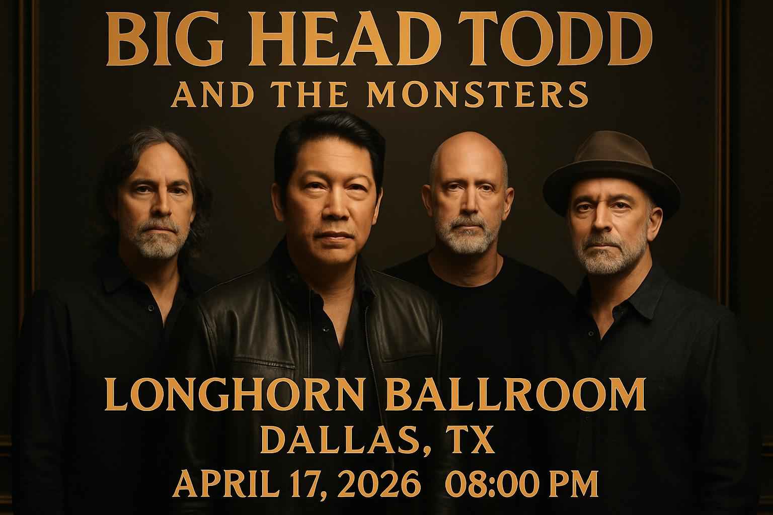Big Head Todd and The Monsters bring their signature blues-rock sound to Longhorn Ballroom on April 17 2026 at 8:00 PM. This Dallas concert features a full setlist of chart-topping hits and crowd-favorite tracks. Longhorn Ballroom is located at 216 Corinth St Rd Dallas TX and offers a legendary music experience with modern amenities and convenient parking. Stay up to date on ticket availability event times and exclusive Longhorn Ballroom deals by connecting with RSVP Event Agency.