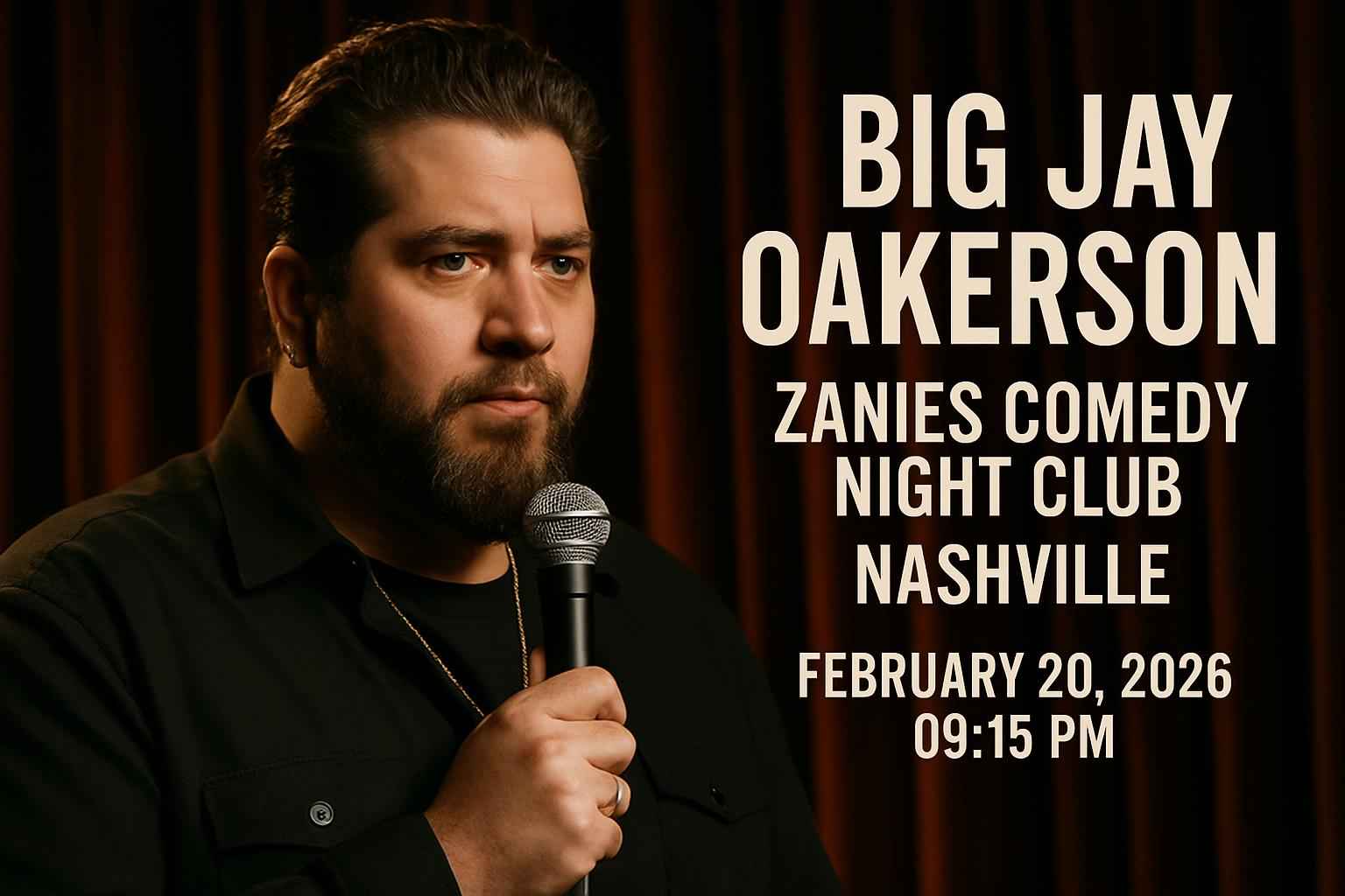 Join fellow comedy lovers for an electrifying night as Big Jay Oakerson takes the Zanies Comedy Night Club stage in Nashville. The show starts at 915 PM so arrive early to grab your seats and enjoy the vibrant local atmosphere. This event is a top pick for date nights group outings and stand-up fans searching for a unique Nashville comedy experience.