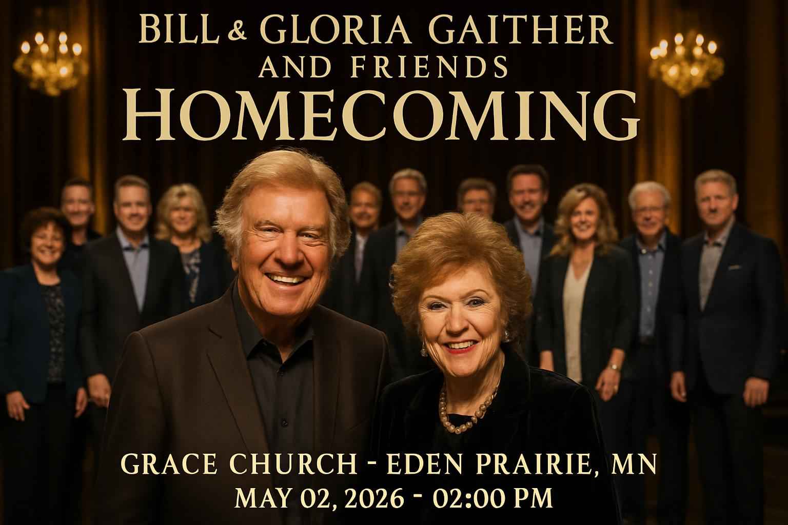 Join Bill & Gloria Gaither and Friends at Grace Church MN located in Eden Prairie for a legendary gospel concert on May 02 2026 starting at 2 PM. This celebrated Homecoming event features beloved voices and classic songs that have moved generations. Families and music lovers from Minneapolis Eden Prairie and the Twin Cities area attend for a powerful experience filled with faith and harmony. Find the latest event details and seating info now.