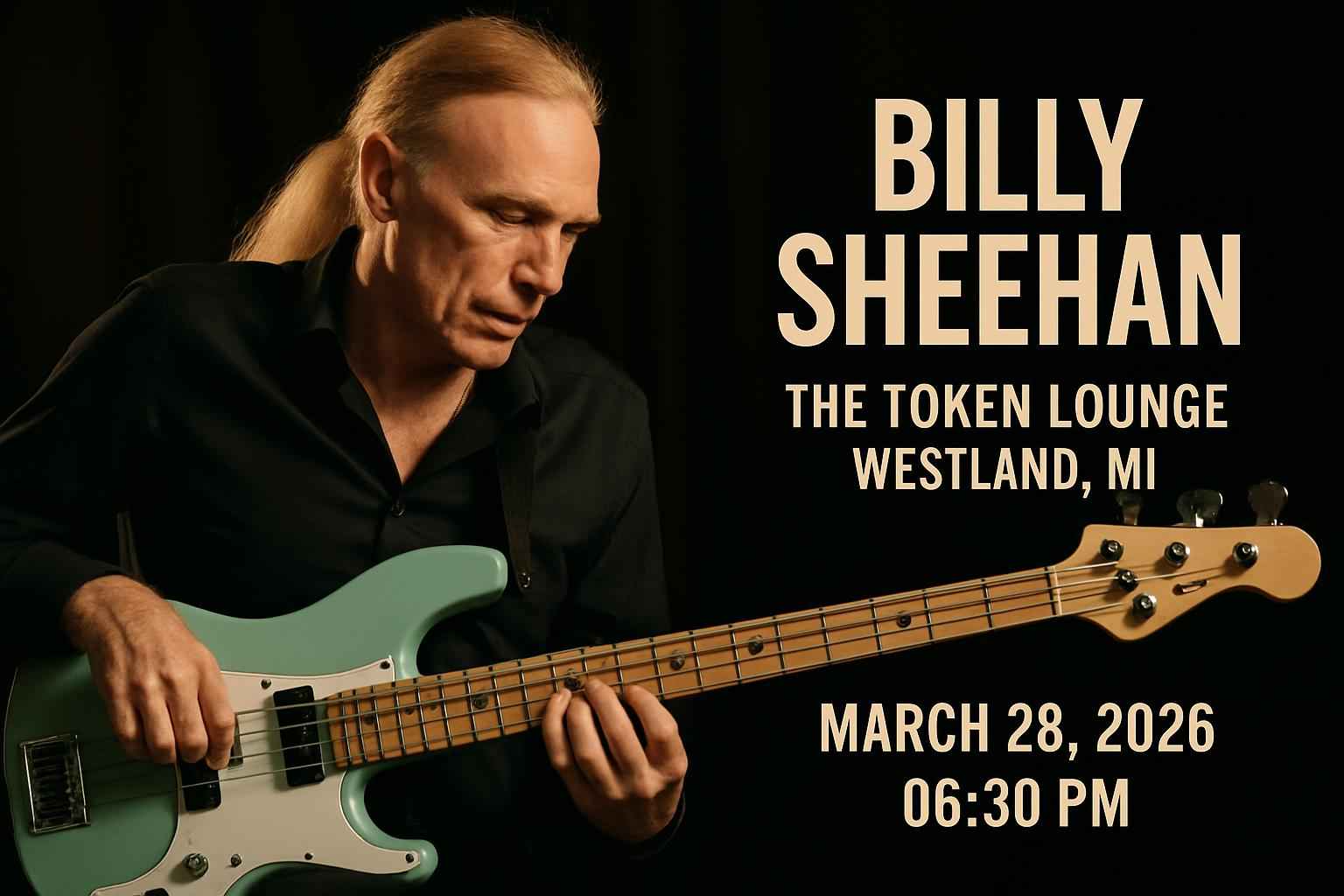 Billy Sheehan takes the stage at The Token Lounge in Westland, MI on March 28, 2026 at 6:30 PM. Arrive early for the best experience and to catch opening acts.