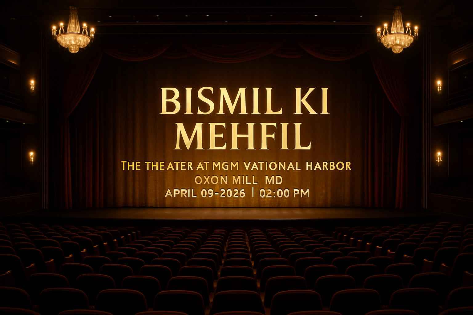 Bismil Ki Mehfil takes place on April 03 2026 at 8 PM at The Theater at MGM National Harbor in Oxon Hill MD.