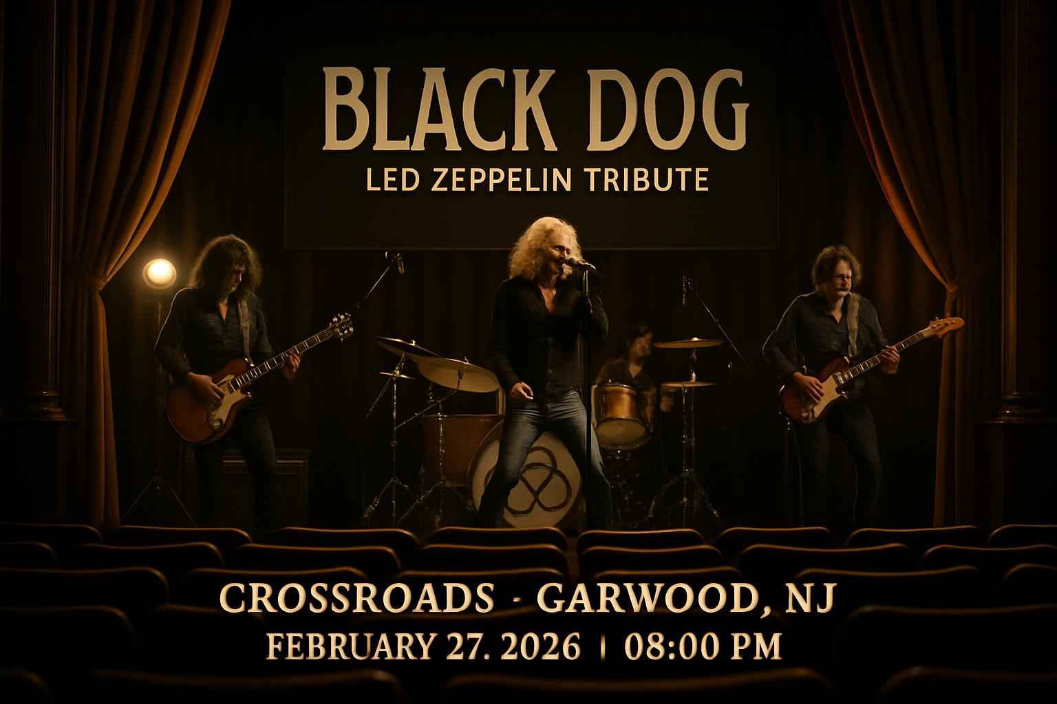 Black Dog – Led Zeppelin Tribute performs iconic rock hits at Crossroads in Garwood, NJ on February 27, 2026, at 8 PM. Fans can enjoy an authentic Led Zeppelin experience with exclusive ticket discounts via RSVP Event Agency. The family-friendly event offers food, drinks, and a vibrant atmosphere, making it a must-see for classic rock lovers in Union County.