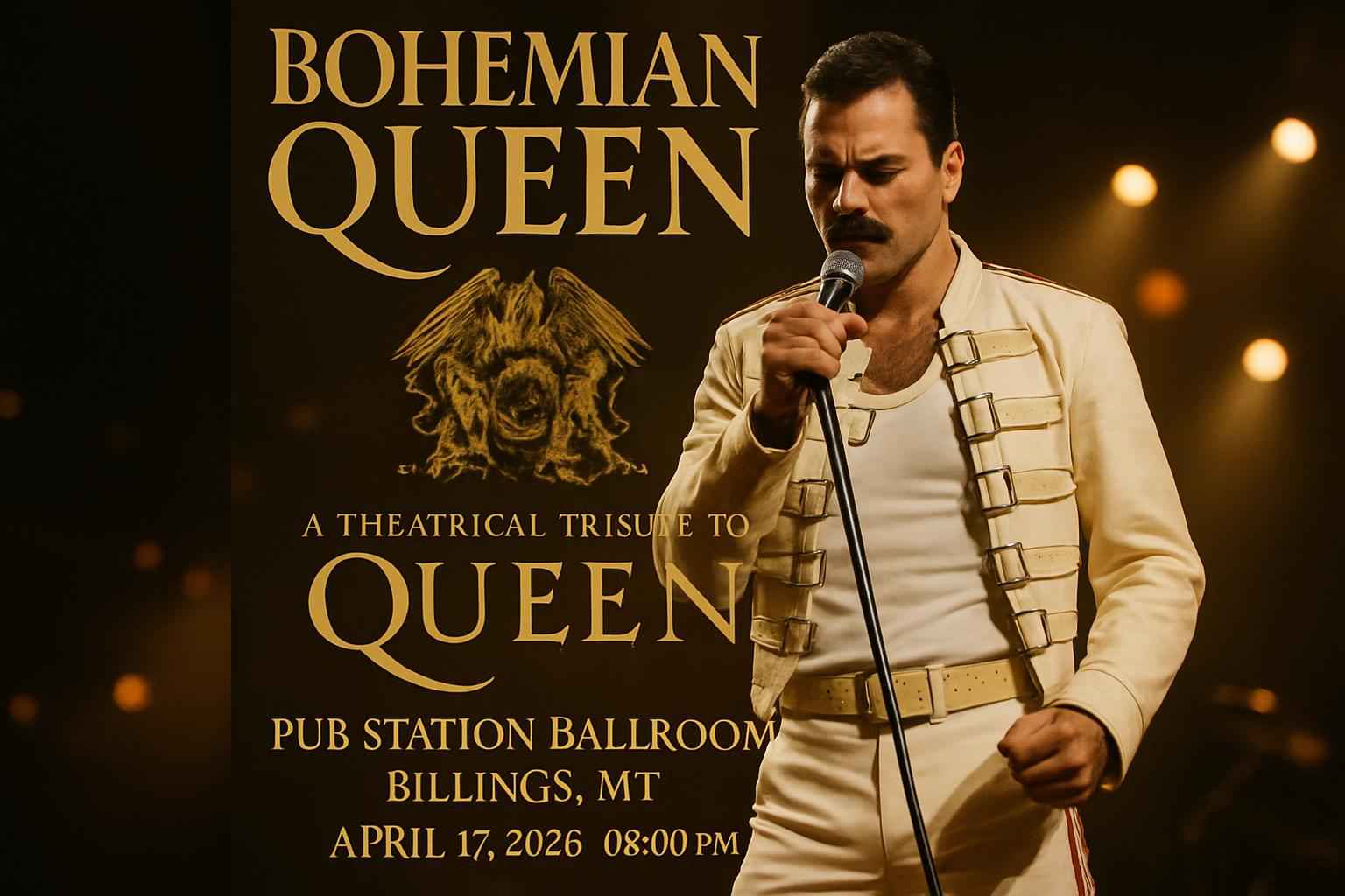 Experience the energy of Bohemian Queen – A Theatrical Tribute To Queen at Pub Station Ballroom in Billings MT on April 17 2026 at 8:00 PM. This high-impact Queen tribute show delivers iconic hits with authentic stage theatrics and powerful live music. Local fans searching for Bohemian Queen tickets promo codes and exclusive discounts can secure verified savings from RSVP Event Agency for this one-night-only event.