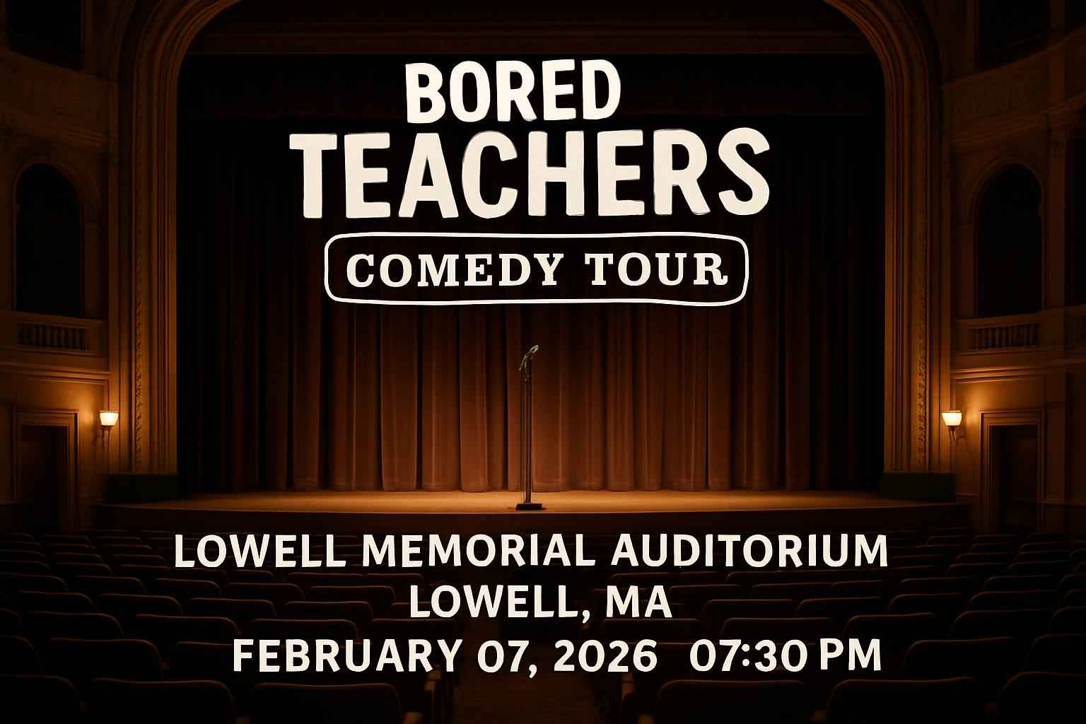 TLDR: The Bored Teachers Comedy Tour hits Lowell Memorial Auditorium on February 7, 2026, at 7:30 PM, featuring hilarious teacher-inspired stand-up. Tickets are limited; secure yours early with exclusive RSVP Event Agency promo codes for discounts. Convenient parking and prime seating options available. Perfect for educators, parents, and comedy fans in Greater Lowell and Middlesex County.