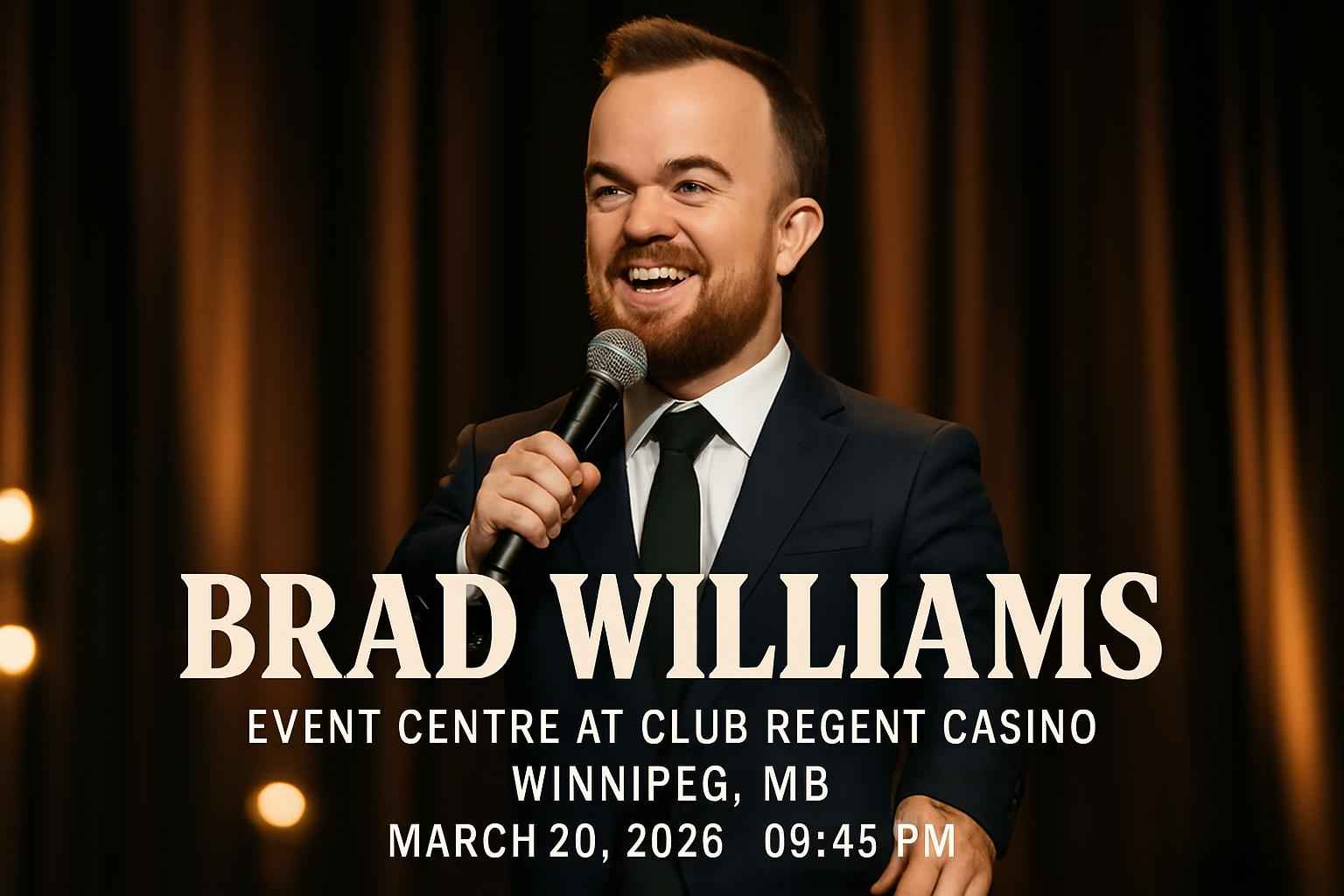 Brad Williams performs on March 28 2026 at 9:45 PM at the Event Centre at Club Regent Casino Winnipeg MB.