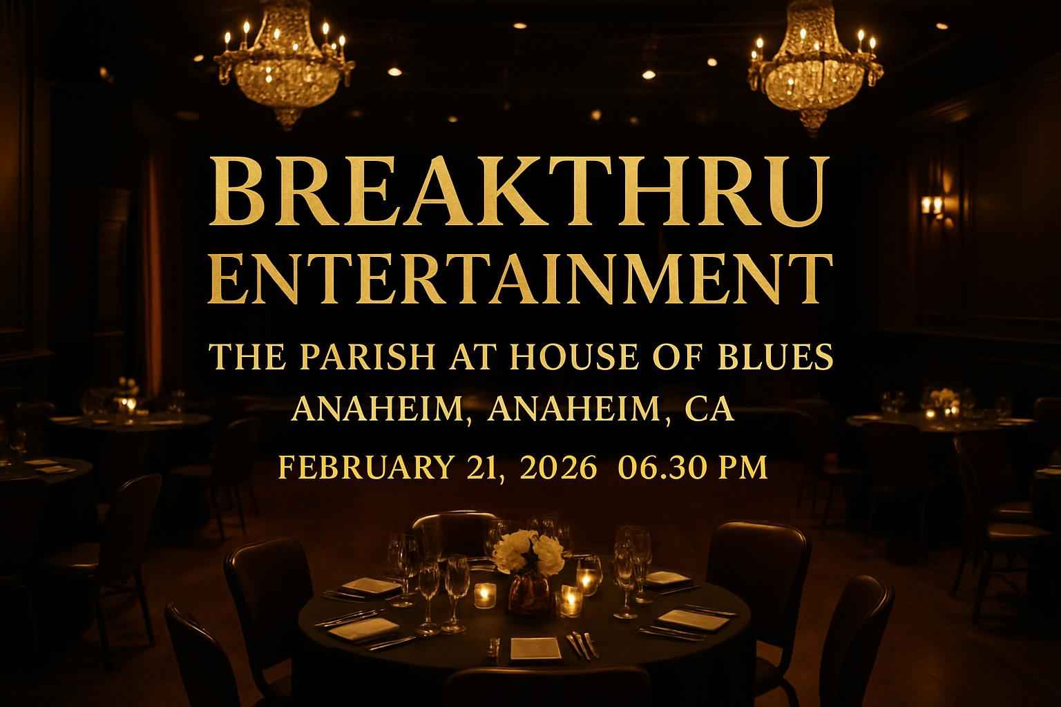 Unlock the best Breakthru Entertainment The Parish At House Of Blues Anaheim coupon codes through RSVP Event Agency. Enjoy instant savings on tickets and VIP packages exclusive to our website. Search for verified Anaheim concert promo codes and apply them directly at checkout for maximum discounts. Act now as these coupon codes are in high demand and offer limited-time savings for the February 21 2026 Breakthru Entertainment event.