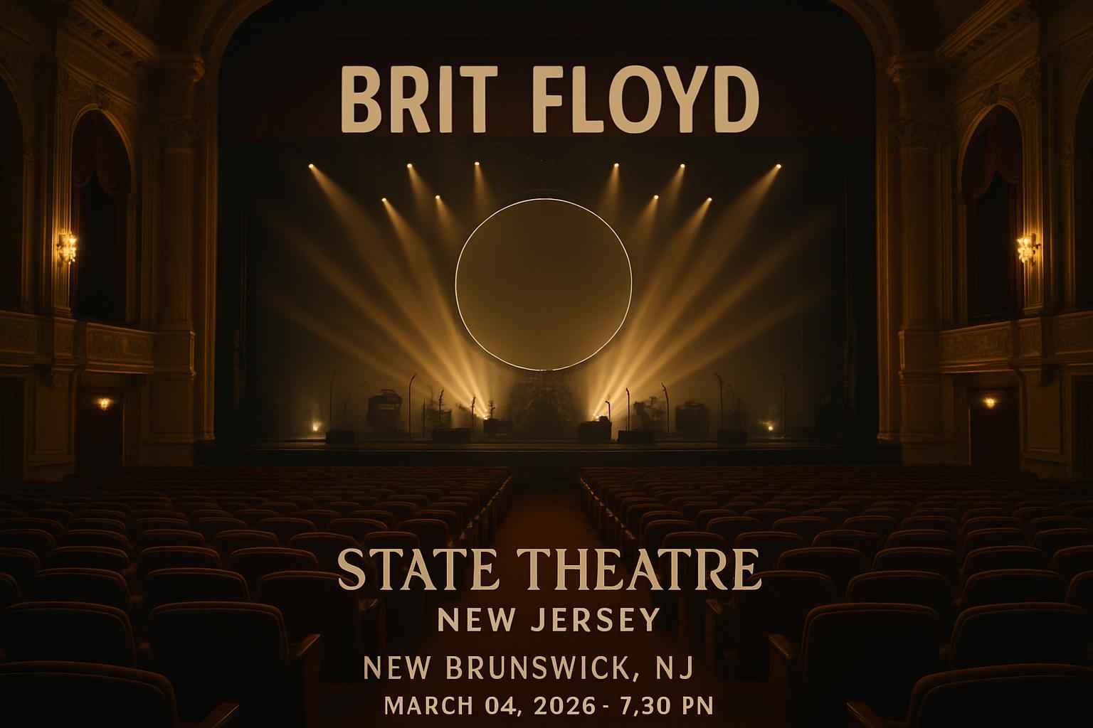 Experience Brit Floyd live at State Theatre New Brunswick on March 4, 2026, 7:30 PM, with iconic Pink Floyd hits and stunning visuals. RSVP Event Agency offers verified coupon codes and exclusive discounts for premium seats. Enjoy easy parking, ADA access, and VIP options. Secure your tickets early for the ultimate tribute concert at the best price.