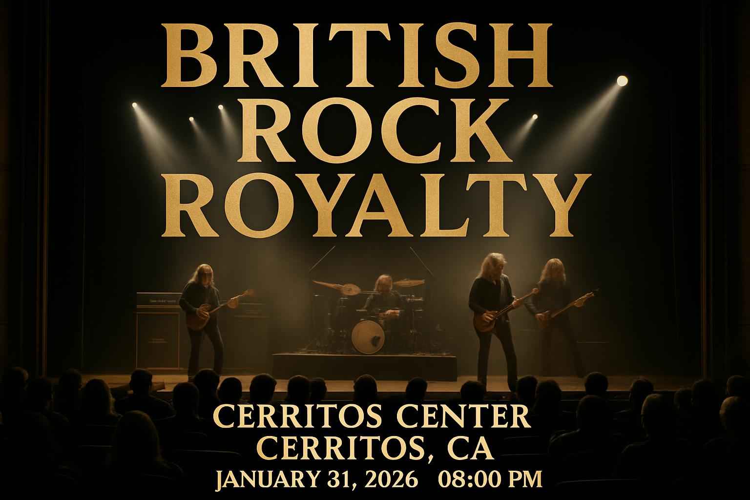 Experience British Rock Royalty live at Cerritos Center, CA on January 31, 2026, at 8 PM. Secure tickets early via RSVP Event Agency to access exclusive coupon codes and discounts. Enjoy top sound, comfortable seating, and convenient parking. VIP options may be available. Tickets are final sale unless the event is canceled or rescheduled. Don’t miss this iconic British rock tribute!