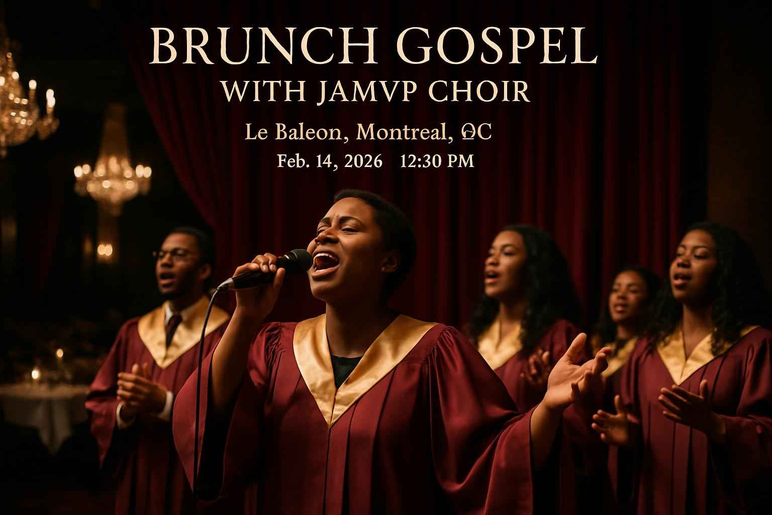 Experience a soulful afternoon at Brunch Gospel with JAMVP Choir at Le Balcon Montreal QC on February 14 2026 at 1230 PM. Celebrate live gospel music and a gourmet brunch in the heart of downtown Montreal. RSVP Event Agency delivers exclusive promo codes and actionable event details for those searching for Brunch Gospel with JAMVP Choir tickets deals and coupon codes in Montreal.