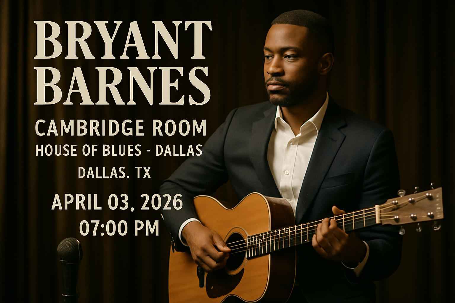 Experience Bryant Barnes live at Cambridge Room at House Of Blues in Dallas TX on April 03 2026 at 0700 PM. Secure your tickets for this high-energy Dallas concert and access exclusive Bryant Barnes promo codes from RSVP Event Agency. Find the best ticket deals and maximize your savings on the most anticipated event in Dallas this spring. Reserve your seat for a standout night in the Dallas music scene today.