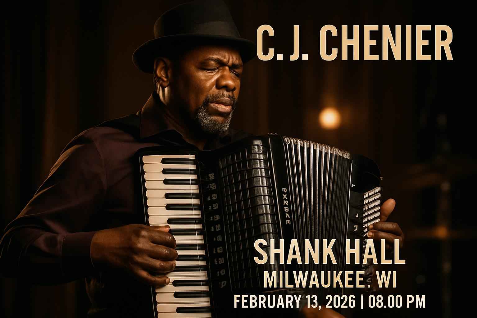 Experience C.J. Chenier live at Shank Hall Milwaukee on February 13, 2026, at 8 PM. Enjoy energetic zydeco music and authentic Louisiana vibes in an intimate venue. Secure discounted tickets using exclusive promo codes from RSVP Event Agency. Doors open at 7 PM; parking is available nearby. Don’t miss this Grammy-nominated artist’s rare Midwest performance.
