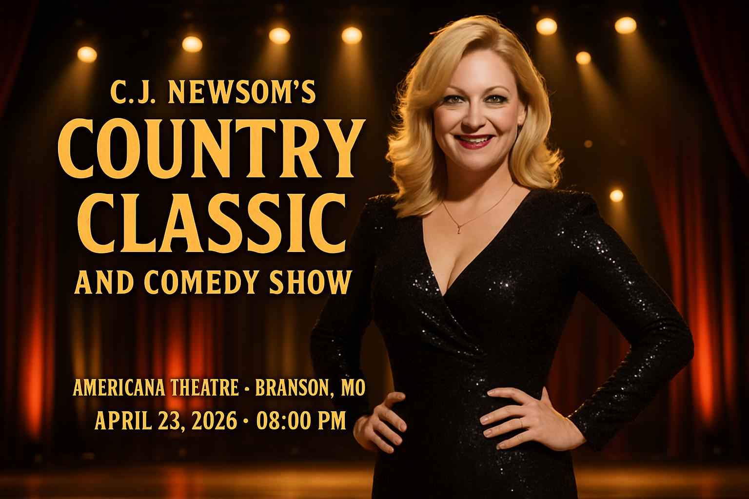Experience the best of Branson country music and comedy at C J Newsoms Country Classic and Comedy Show – Americana Theatre Branson MO on April 23 2026 at 8 PM. This acclaimed live show blends classic country hits high-energy performances and family-friendly comedy in the heart of Branson Missouri. Secure exclusive savings and the lowest prices by using verified coupon codes from RSVP Event Agency now.