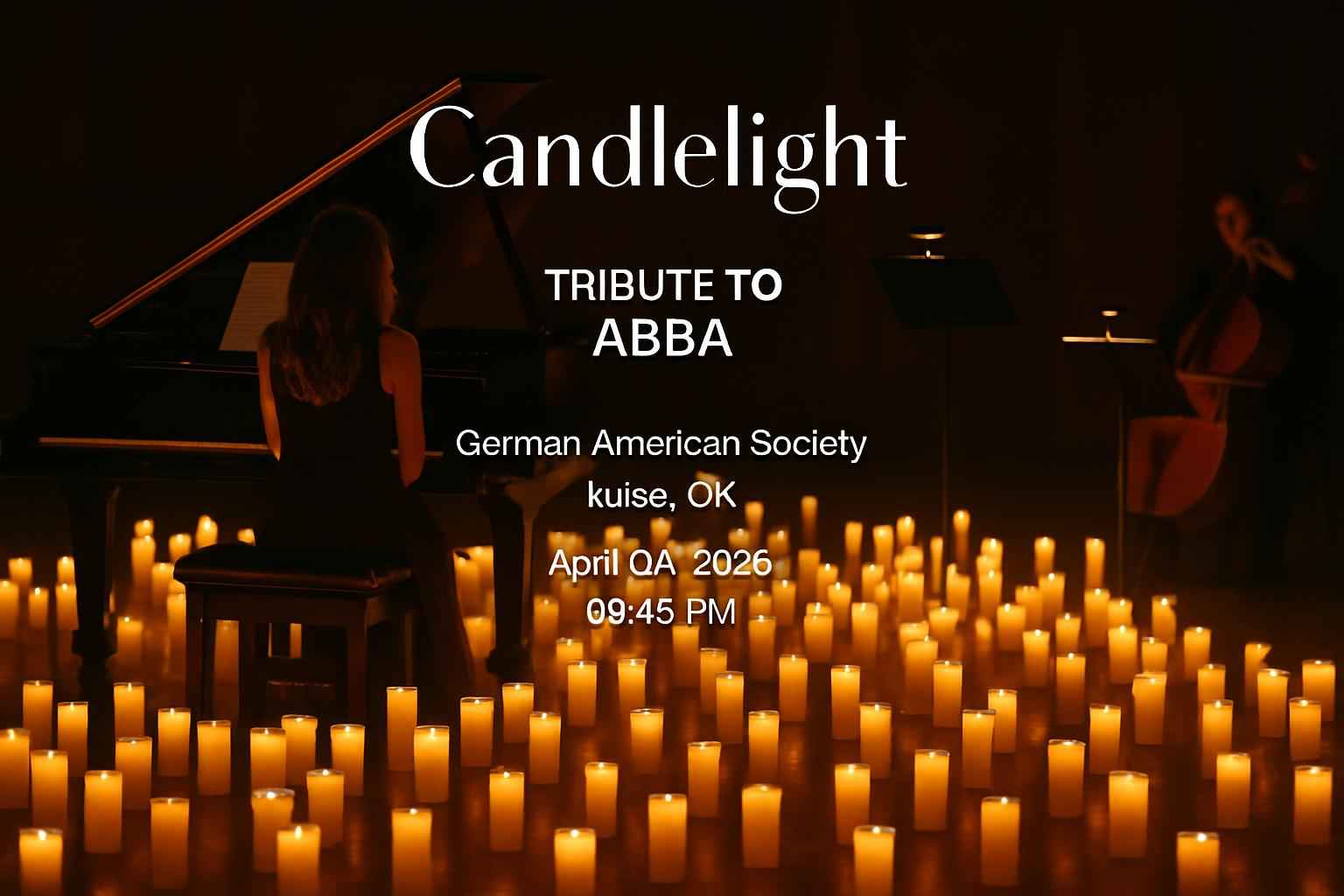Experience Candlelight: Tribute to ABBA at the German American Society in Tulsa on April 4 2026 at 0845 PM for a night of unforgettable live music under a glow of hundreds of candles. Discover exclusive promo codes and secure your seat at this highly anticipated ABBA tribute with RSVP Event Agency Tulsa’s trusted source for verified discount codes and last-minute ticket info.