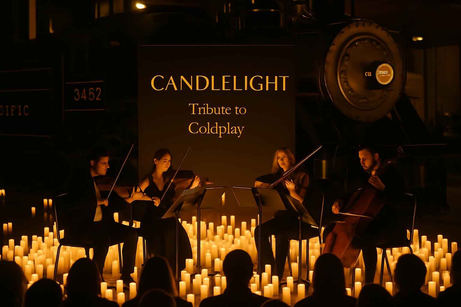 Expect live string quartet renditions of Coldplay classics including Clocks, Paradise, Fix You, Viva La Vida, Yellow, and The Scientist, performed in a candlelit setting at the California State Railroad Museum.
