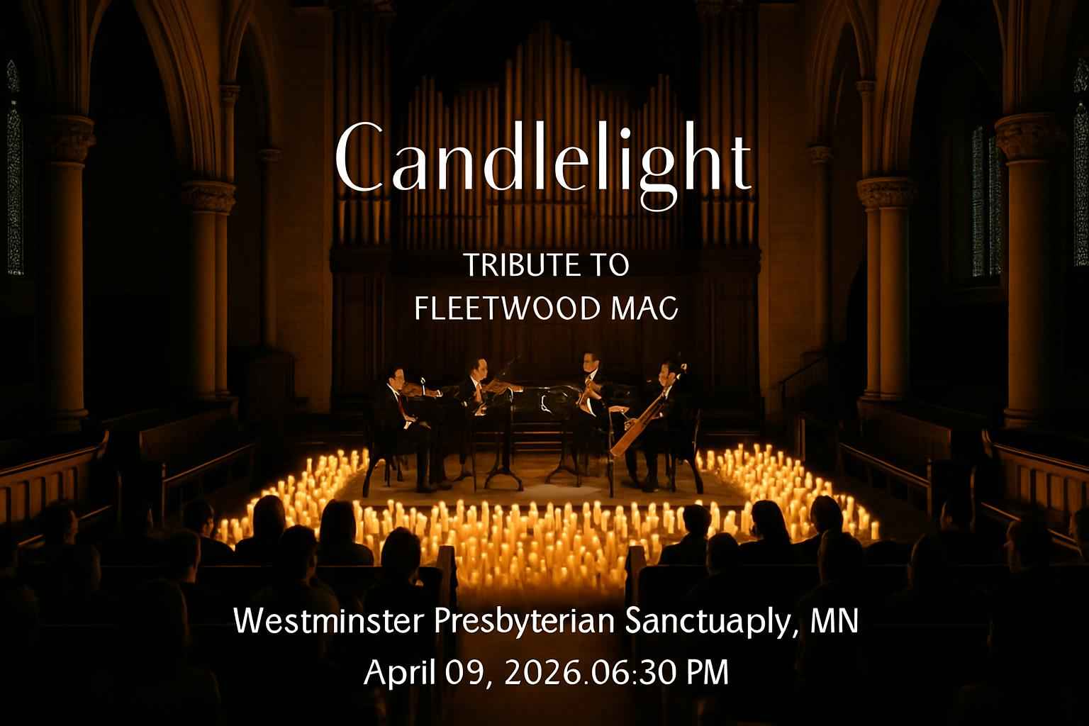 Experience Candlelight Tribute to Fleetwood Mac at Westminster Presbyterian Sanctuary in Minneapolis MN on April 9 2026 at 0630 PM. This live music event offers a unique candlelit setting and features the timeless songs of Fleetwood Mac performed by talented local musicians. Discover an immersive evening with superior acoustics and ambiance in one of Minneapolis top historic venues.