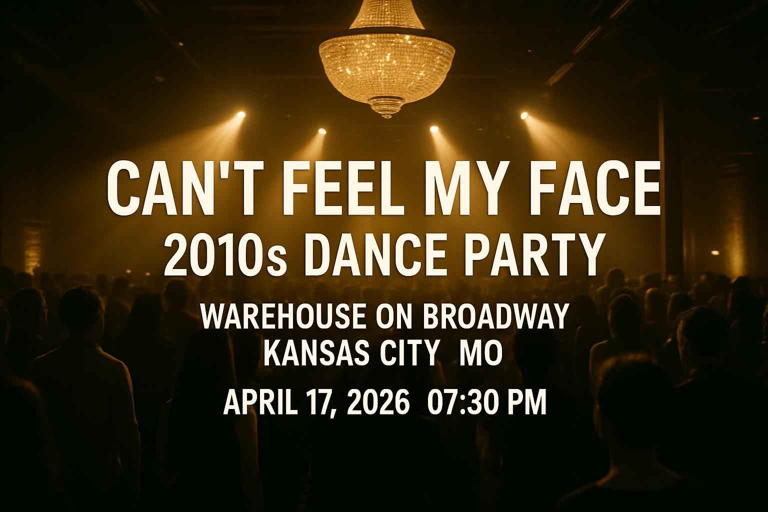 Can-t Feel My Face 2010s Dance Party brings together top 2010s pop and dance tracks in a high-energy setting. Taking place at Warehouse On Broadway on April 17 2026 at 0730 PM this event attracts dance music fans and Kansas City locals seeking a nostalgic party experience. DJs will spin chart-topping 2010s hits all evening. Early ticket purchase with RSVP Event Agency promo codes ensures best rates and guaranteed entry.