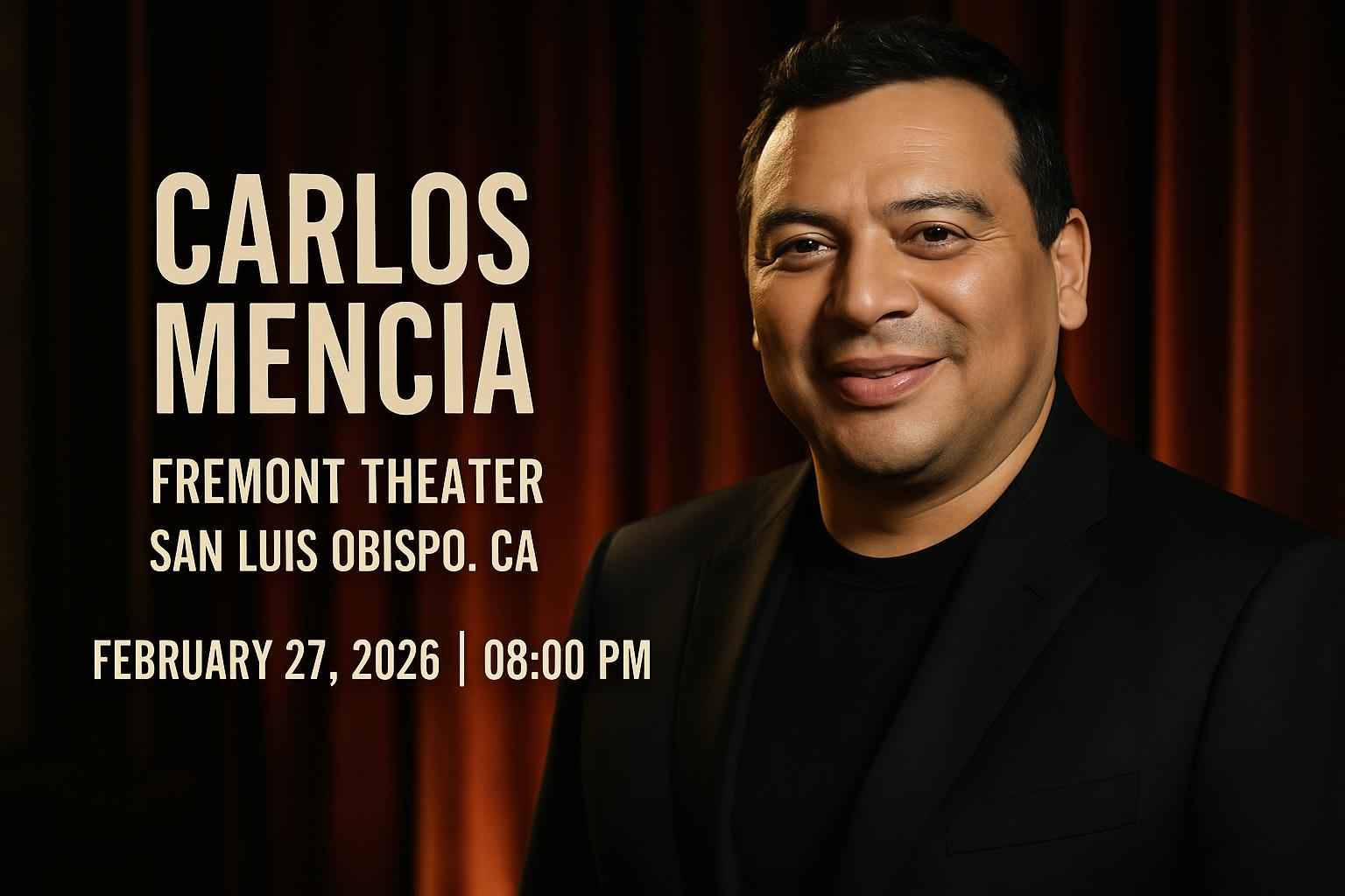 Carlos Mencia performs at Fremont Theater in San Luis Obispo on February 27 2026 at 8 PM.