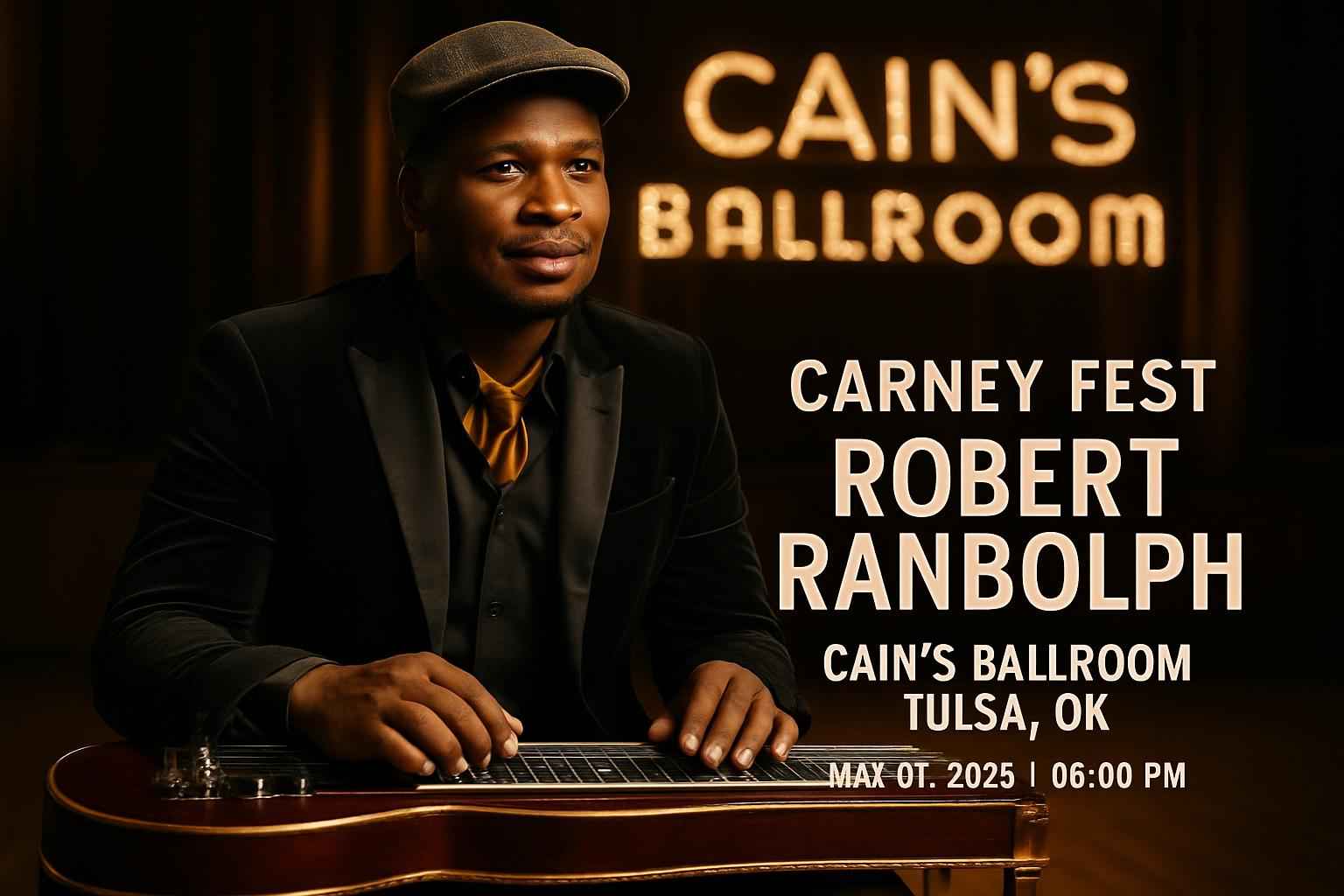 Carney Fest featuring Robert Randolph begins at 6 PM on May 01 2026 at Cains Ballroom in Tulsa OK. Doors open early for VIP and premium ticket holders.