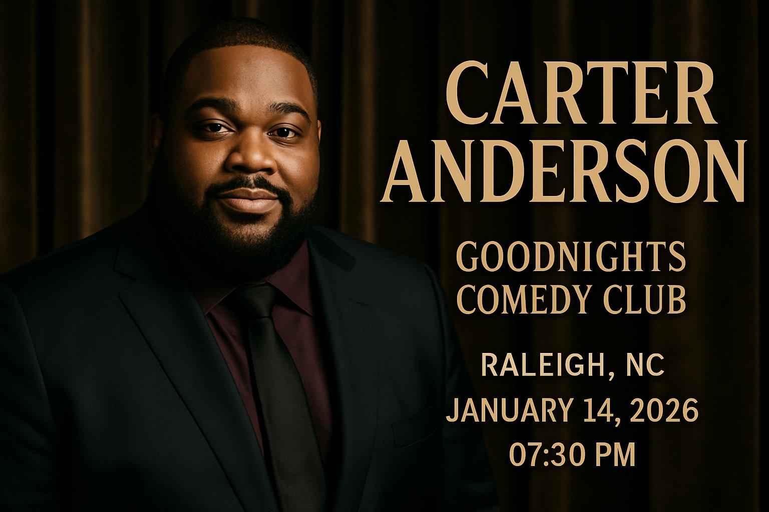 Experience Carter Anderson live at Goodnights Comedy Club in Raleigh on January 14, 2026, at 7:30 PM. Secure exclusive coupon codes and discounts through RSVP Event Agency for the best ticket prices and premium seating. Enjoy a top-rated comedy show with verified deals, convenient venue access, and local support for an unforgettable night in North Carolina.