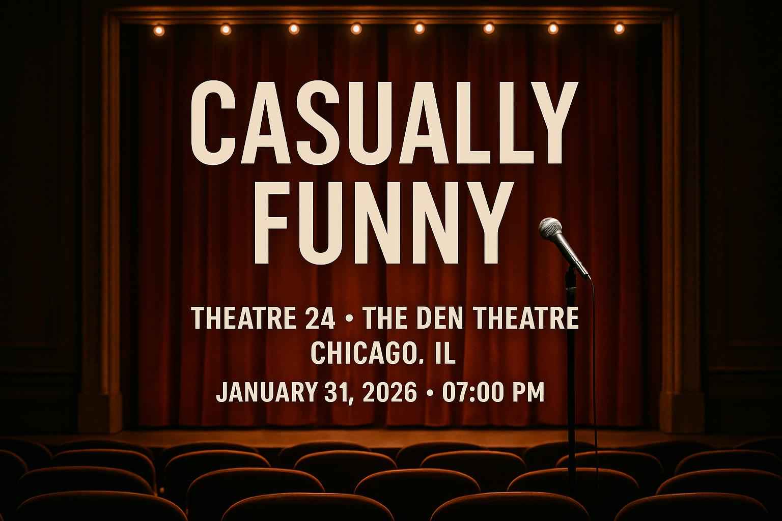 Casually Funny begins promptly at 700 PM on January 31 2026 at Theatre 2A The Den Theatre Chicago.