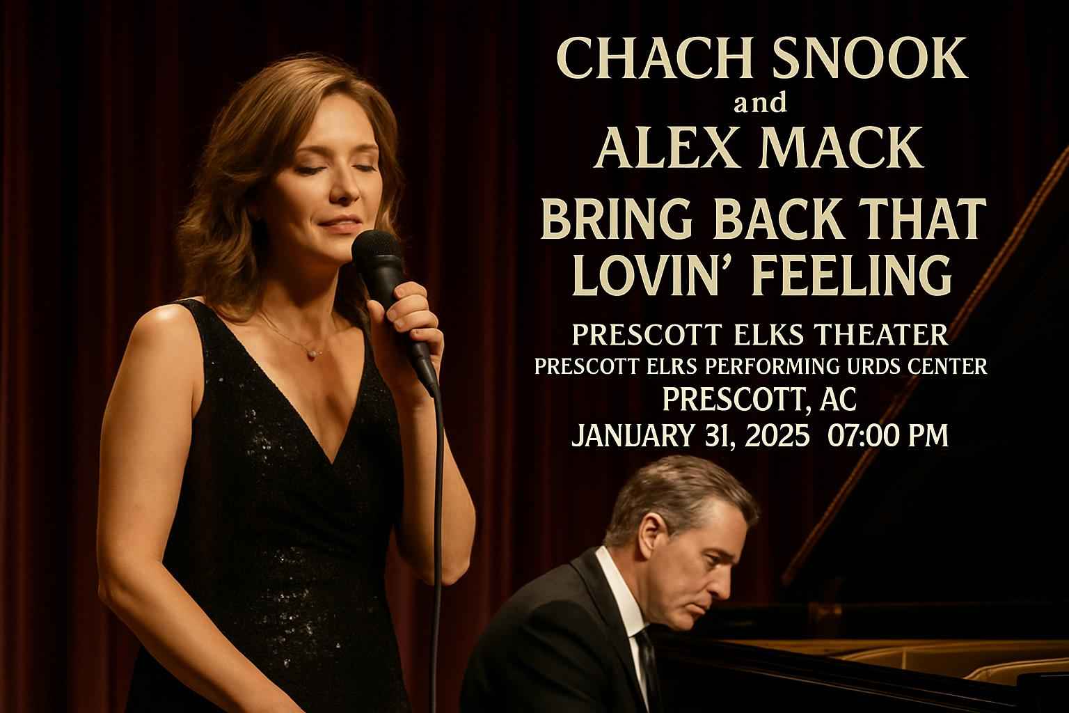 Experience Chach Snook and Alex Mack – Bring Back That Lovin Feeling at Prescott Elks Theater inside Prescott Elks Performing Arts Center in Prescott AZ on January 31 2026 at 700 PM Discover this highly anticipated live music event where classic hits and powerful vocals blend for an unforgettable evening in the heart of Prescott Arizona Secure exclusive RSVP Event Agency coupon codes for instant savings on ticket prices and guarantee your seats at Prescott’s top live entertainment venue