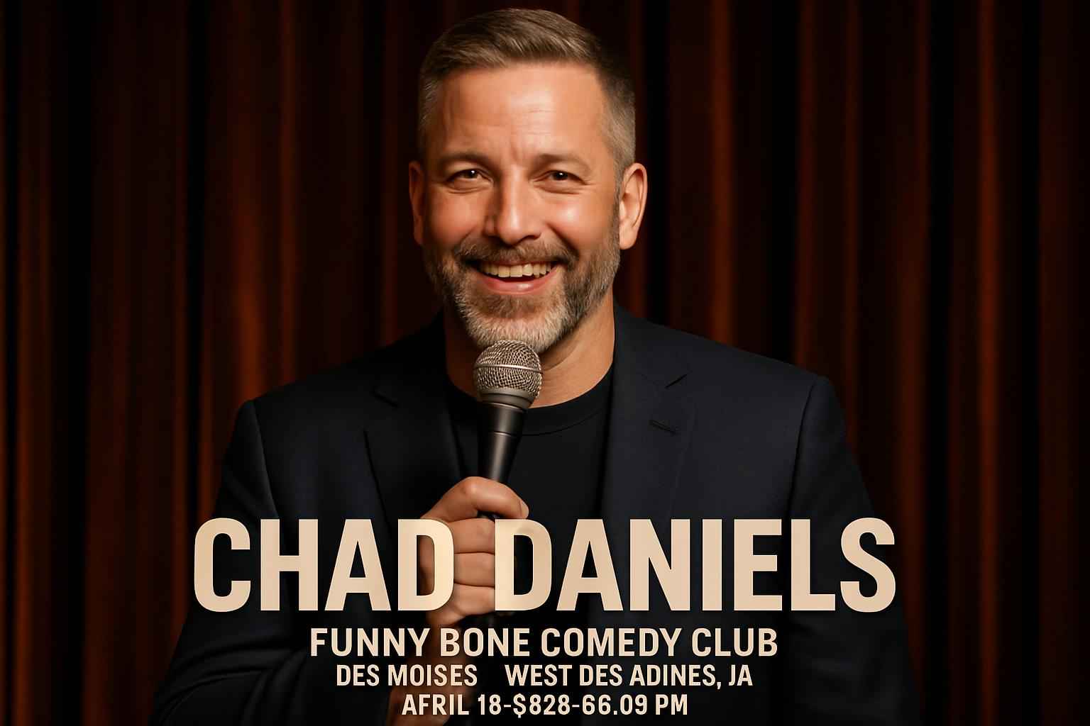 Experience an unforgettable night of stand-up with Chad Daniels at Funny Bone Comedy Club in West Des Moines IA on April 18 2026 at 9 PM. Secure exclusive event promo codes and discover everything you want to know about this top Des Moines comedy event. RSVP Event Agency helps you laugh more and pay less with the best Chad Daniels ticket coupon codes available now.