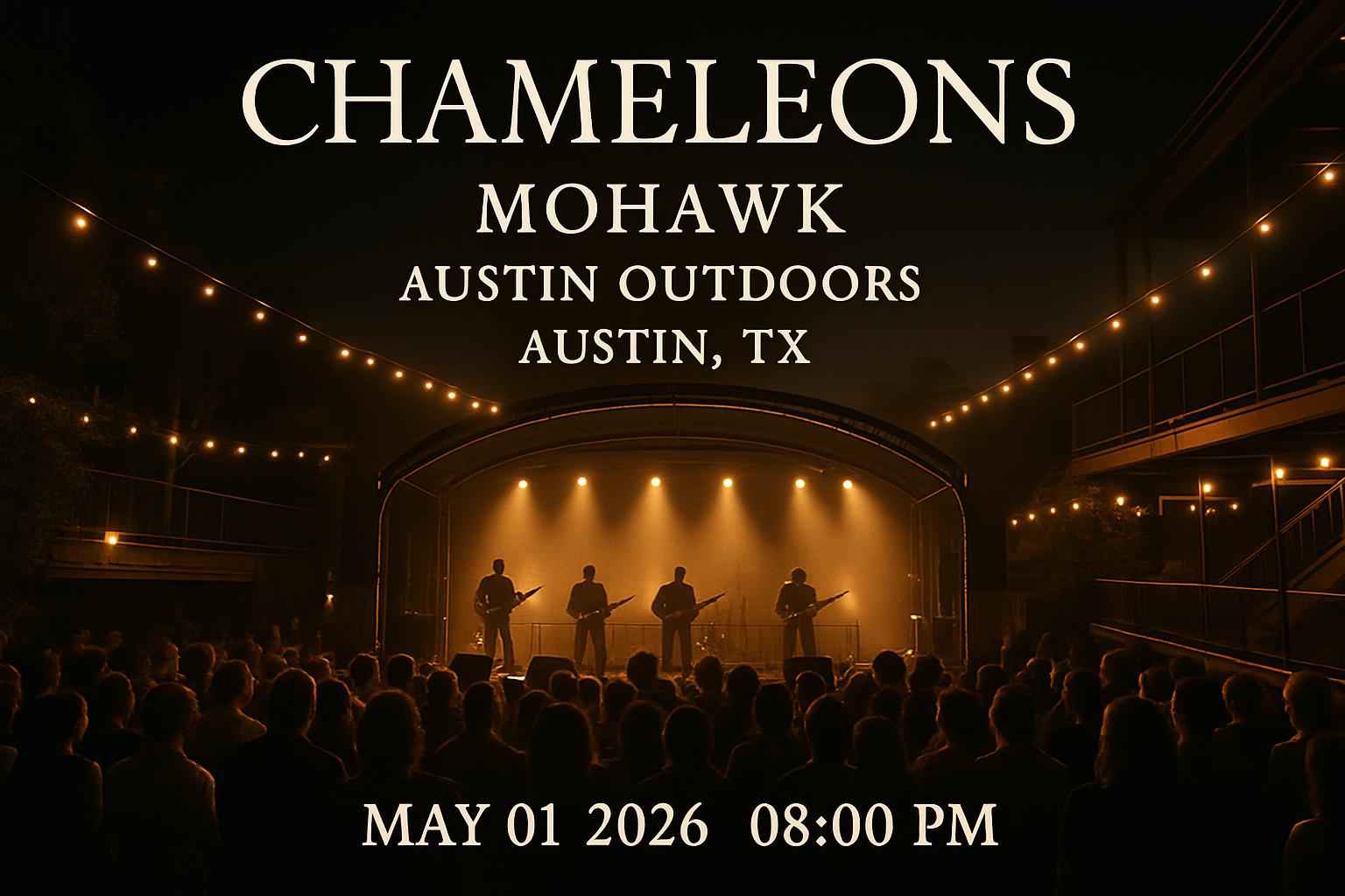 Chameleons bring their legendary post-punk sound to Mohawk – Austin Outdoors on May 01 2026. This highly anticipated outdoor concert in downtown Austin TX promises an electrifying atmosphere and memorable performances. Doors open at 7 PM with the main show starting at 8 PM. Mohawk – Austin Outdoors is located at 912 Red River St Austin TX known for its vibrant live music scene and unique open-air setting.
