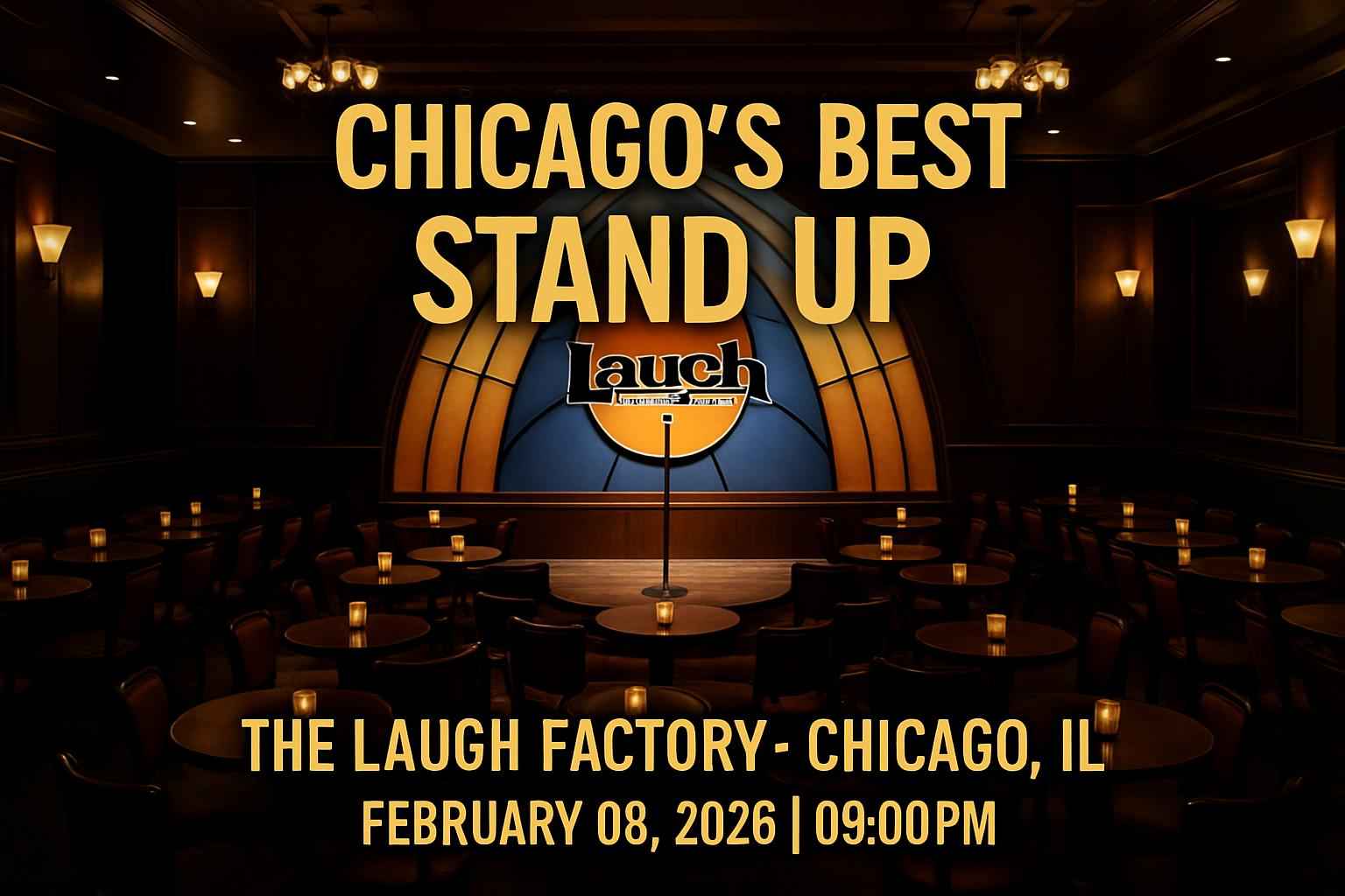 Experience top Chicago comedy at Chicago's Best Stand Up on February 8, 2026, 9 PM at The Laugh Factory, 3175 N Broadway St. Secure exclusive promo codes and tickets via RSVP Event Agency for the best rates and seating. Enjoy performances by local and national comedians in an iconic venue with accessible parking and transit options.