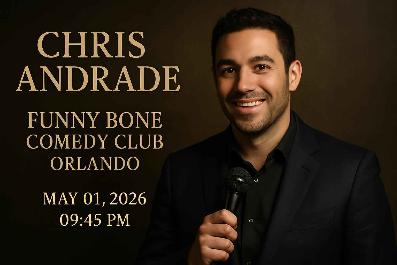 Chris Andrade performs at Funny Bone Comedy Club Orlando on May 1 2026 at 945 PM.