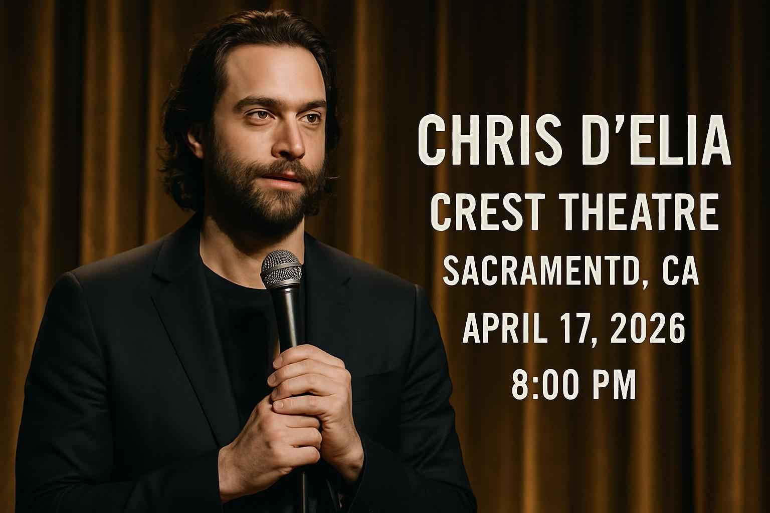 Chris D Elia brings his unique comedic style to Crest Theatre in downtown Sacramento. Doors open at 7 PM and the show begins at 8 PM sharp. Enjoy secure parking nearby and easy access to local dining before or after the event. This Crest Theatre comedy event attracts fans from across Sacramento County and Northern California.